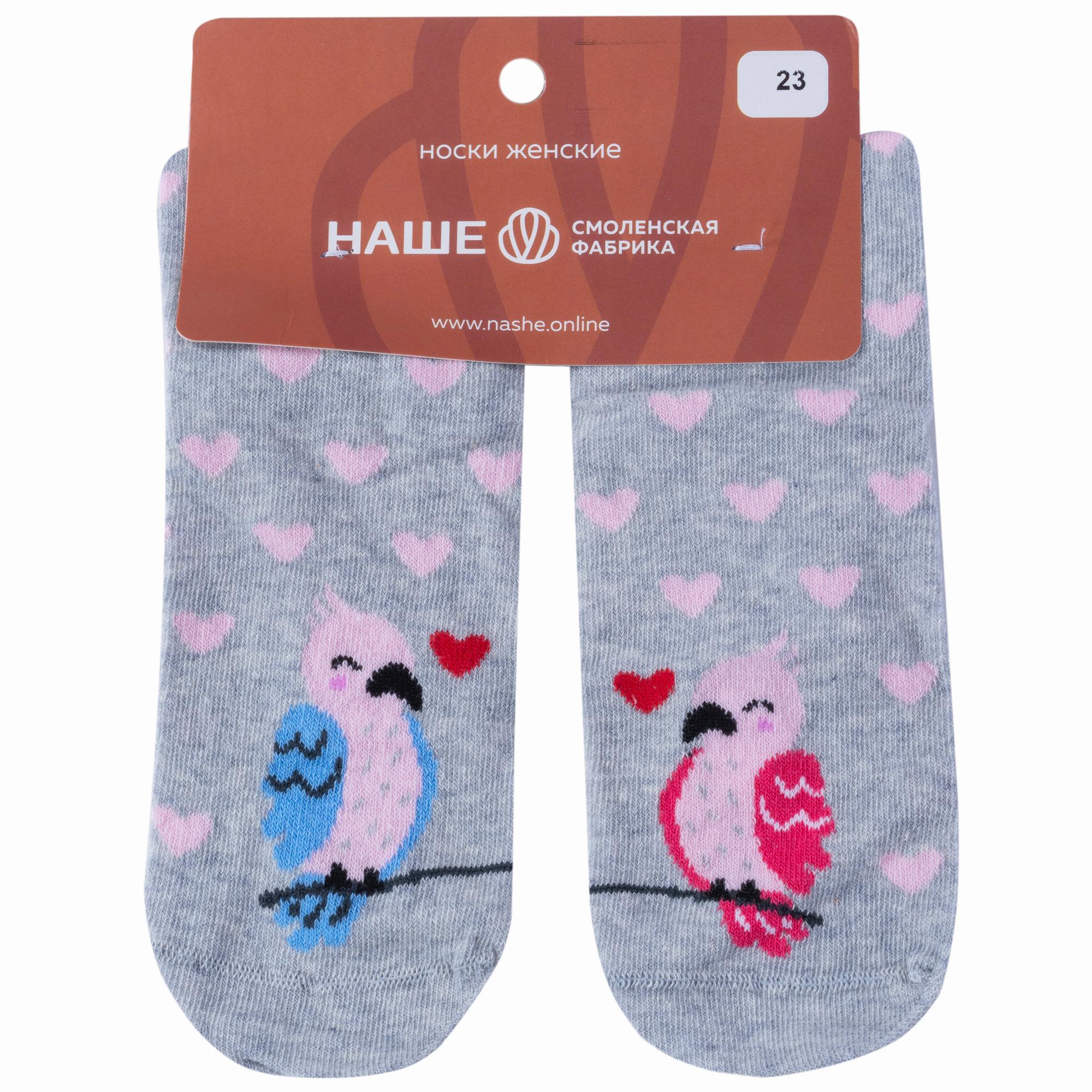 Круглогодичные укороченные женские носки, цвет светло-серый, разного цвета, необычные, повседневные, шов обычный (не бесшовные), принт (рисунок): крупные контрастные рисунки, с узором, животные, состав: 70% хлопок, 20% полиамид, 8% полипропилен, 2% эластан, арт. 422С8. Производитель «Смоленская чулочная фабрика, Россия» под брендом «Наше смоленской чулочной фабрики».