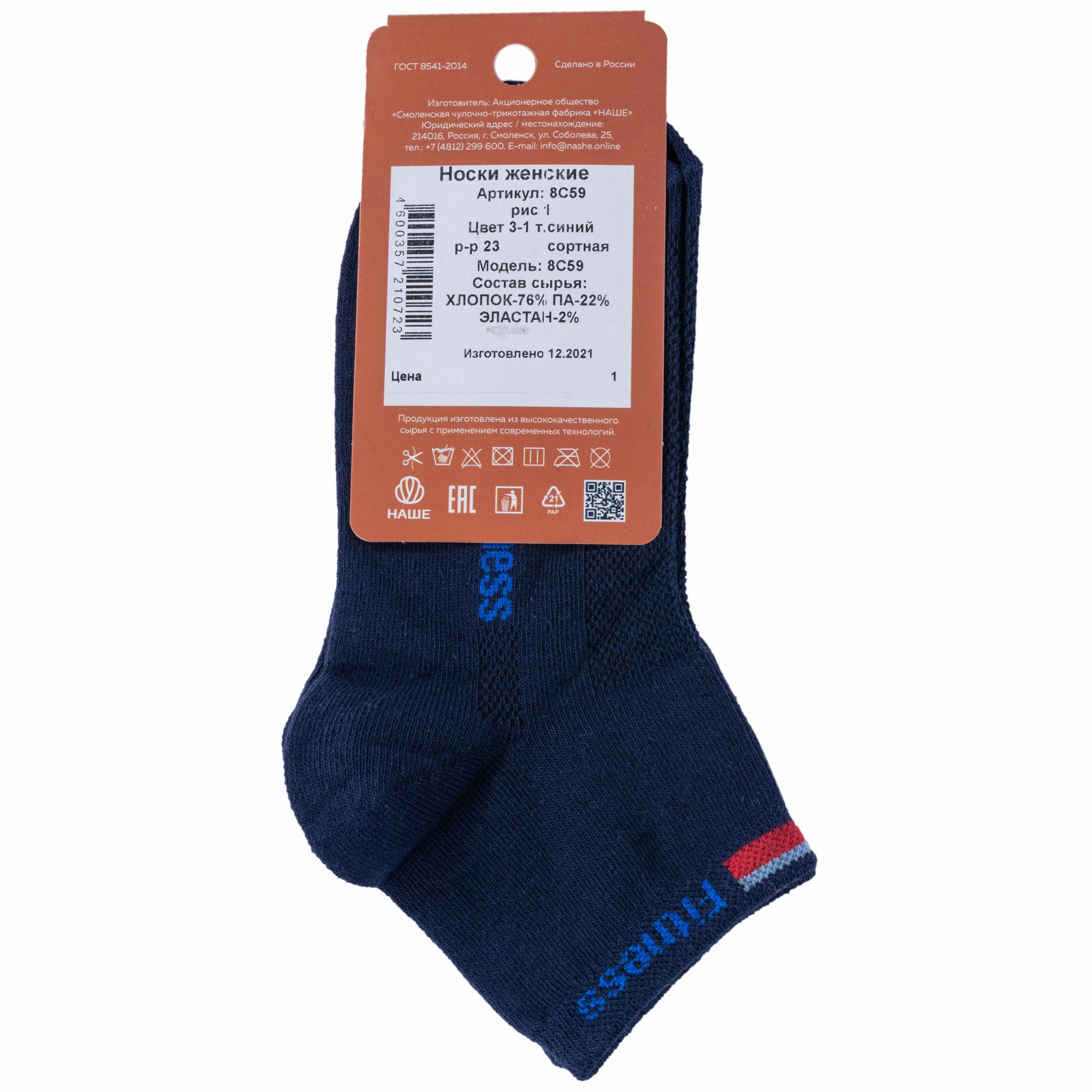 Летние короткие женские носки, цвет темно-синий, спортивные, в сеточку, шов обычный (не бесшовные), принт (рисунок): с узором, спортивные, состав: 76% хлопок, 22% полиамид, 2% эластан, арт. 8С59. Производитель «Смоленская чулочная фабрика, Россия» под брендом «Наше смоленской чулочной фабрики».