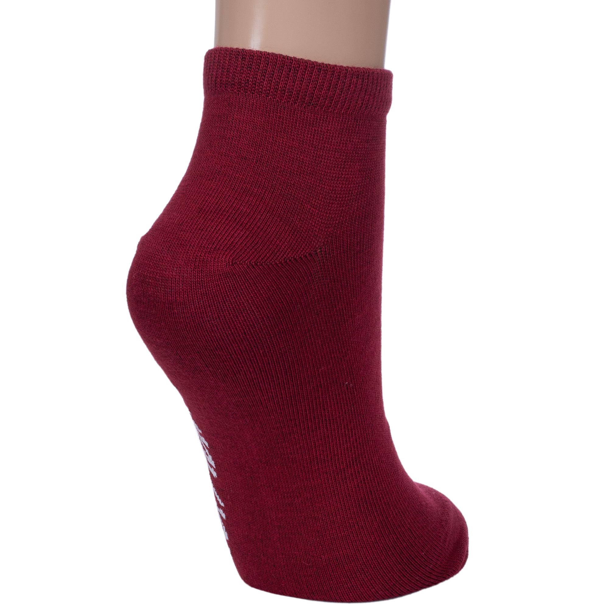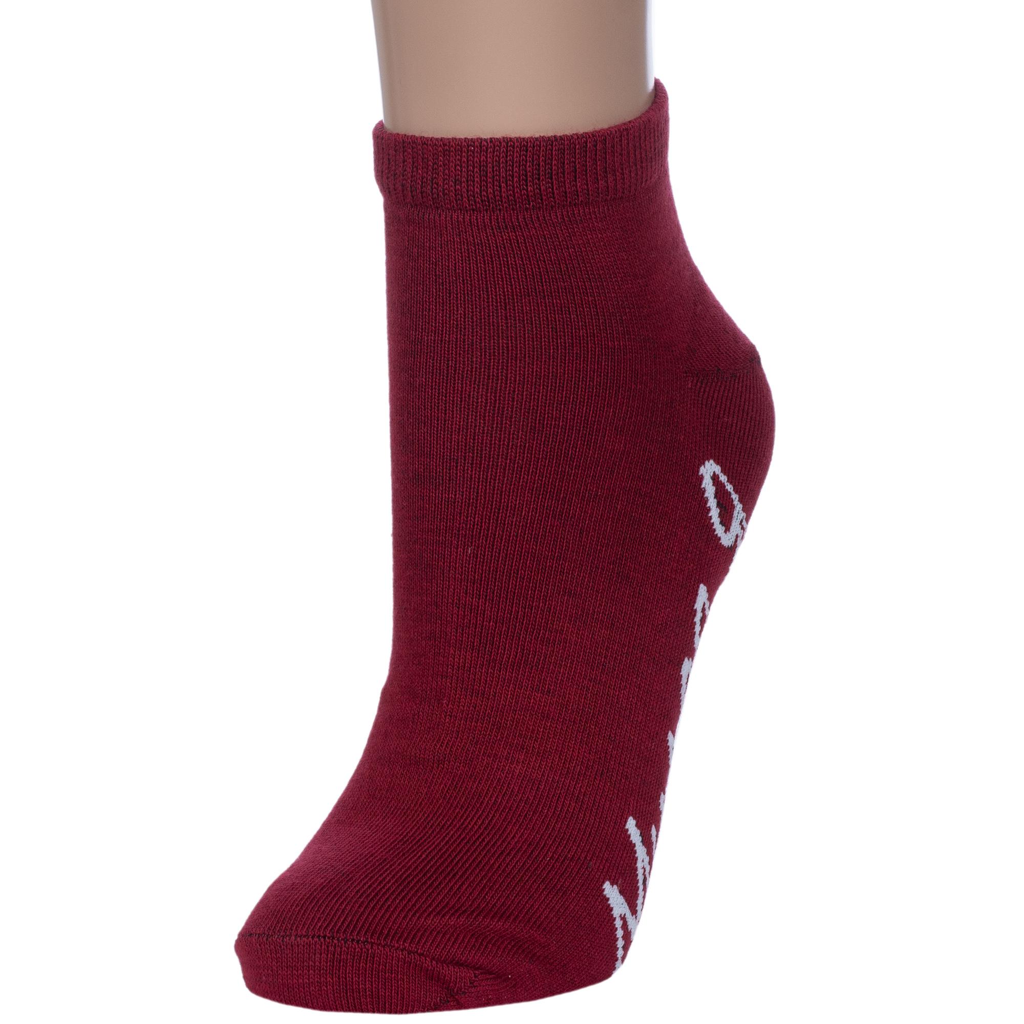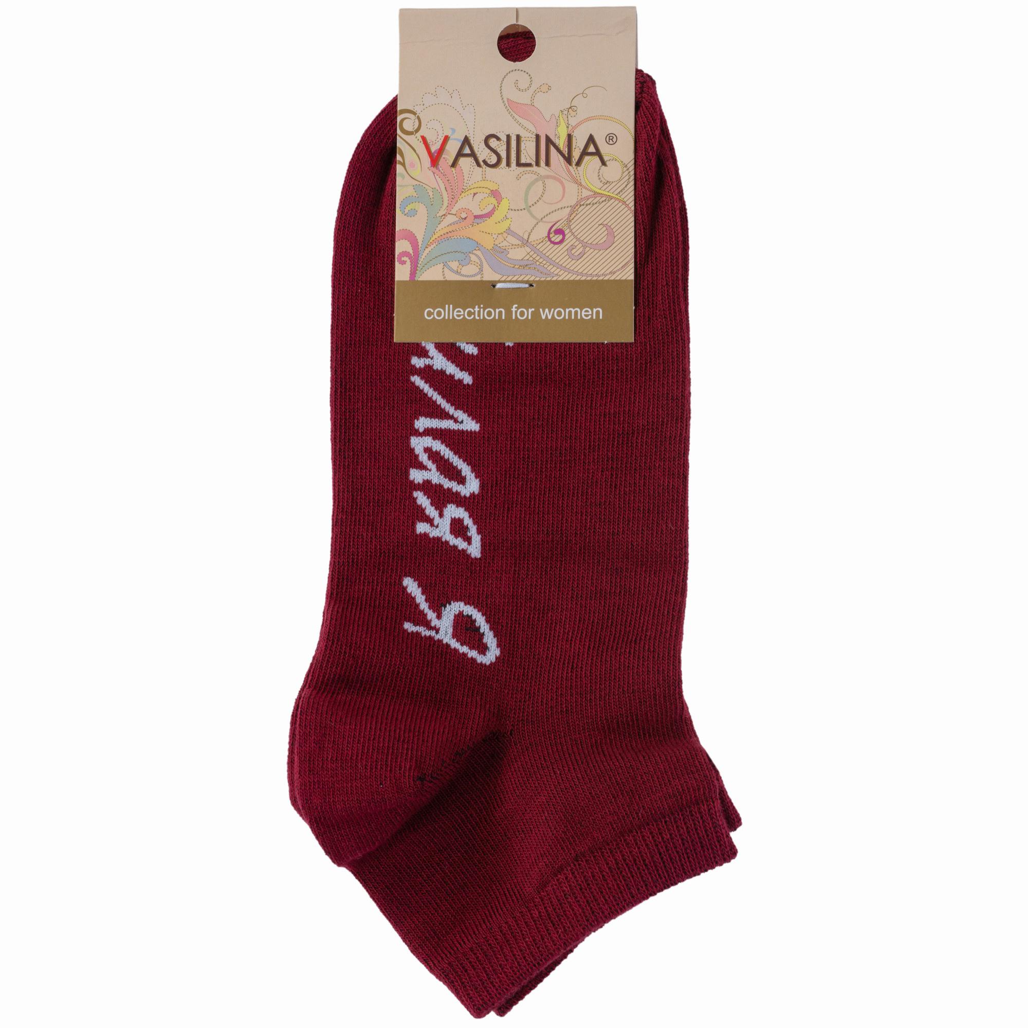 Круглогодичные короткие женские носки, цвет бордовый, повседневные, шов обычный (не бесшовные), принт (рисунок): надписи, с узором, состав: 74% хлопок, 24% полиэстер, 2% эластан, арт. 1С9288. Производитель «ООО Фабрика Василина, Беларусь» под брендом «Vasilina».