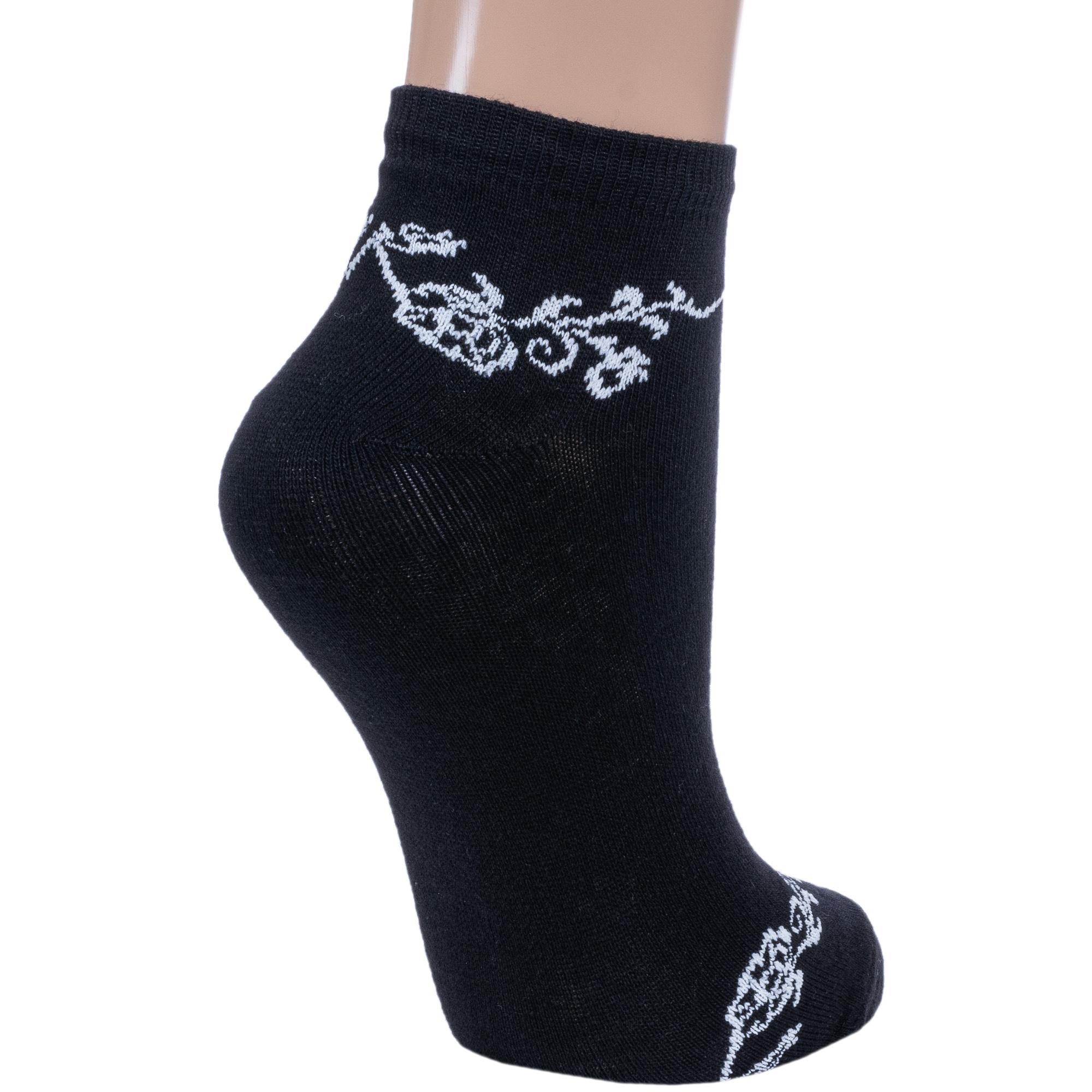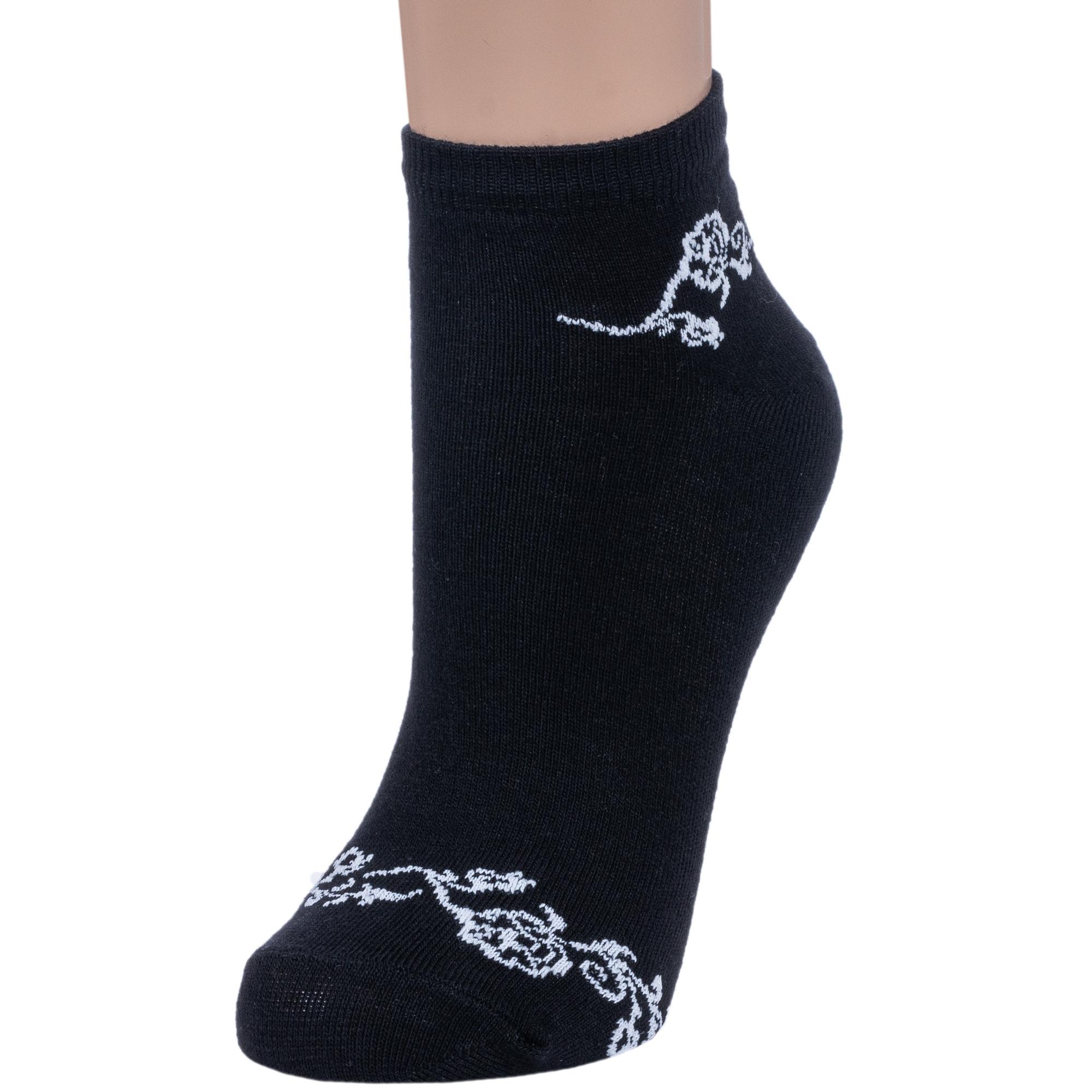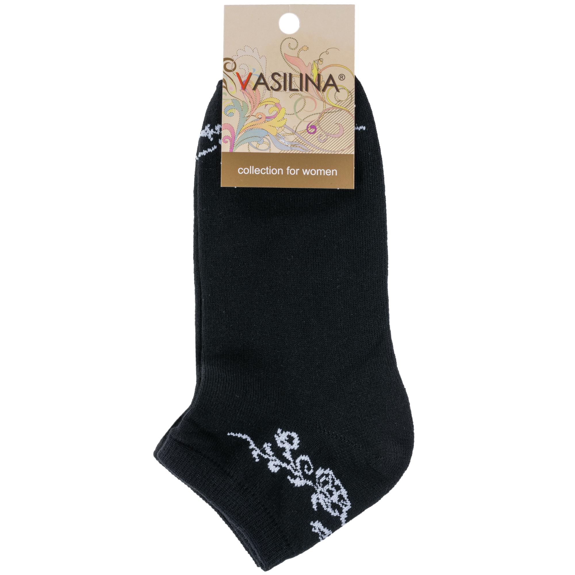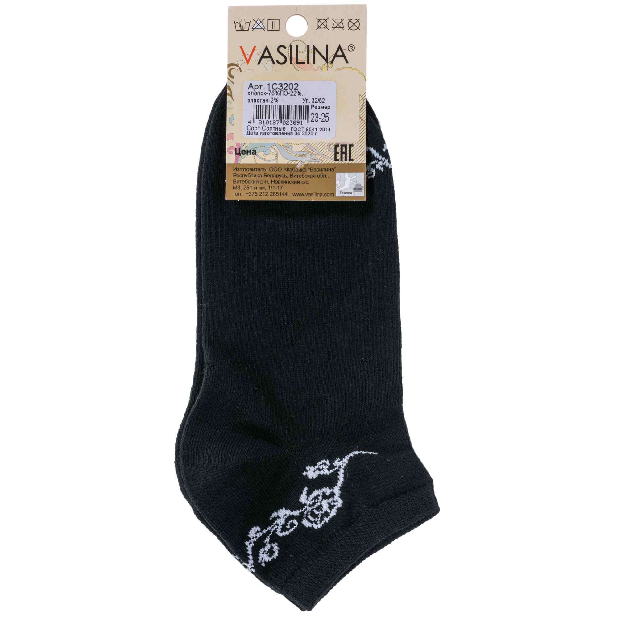 Круглогодичные короткие женские носки, цвет черный, повседневные, шов обычный (не бесшовные), принт (рисунок): с узором, цветы / растения, состав: 76% хлопок, 22% полиэстер, 2% эластан, арт. 1С3202. Производитель «ООО Фабрика Василина, Беларусь» под брендом «Vasilina».
