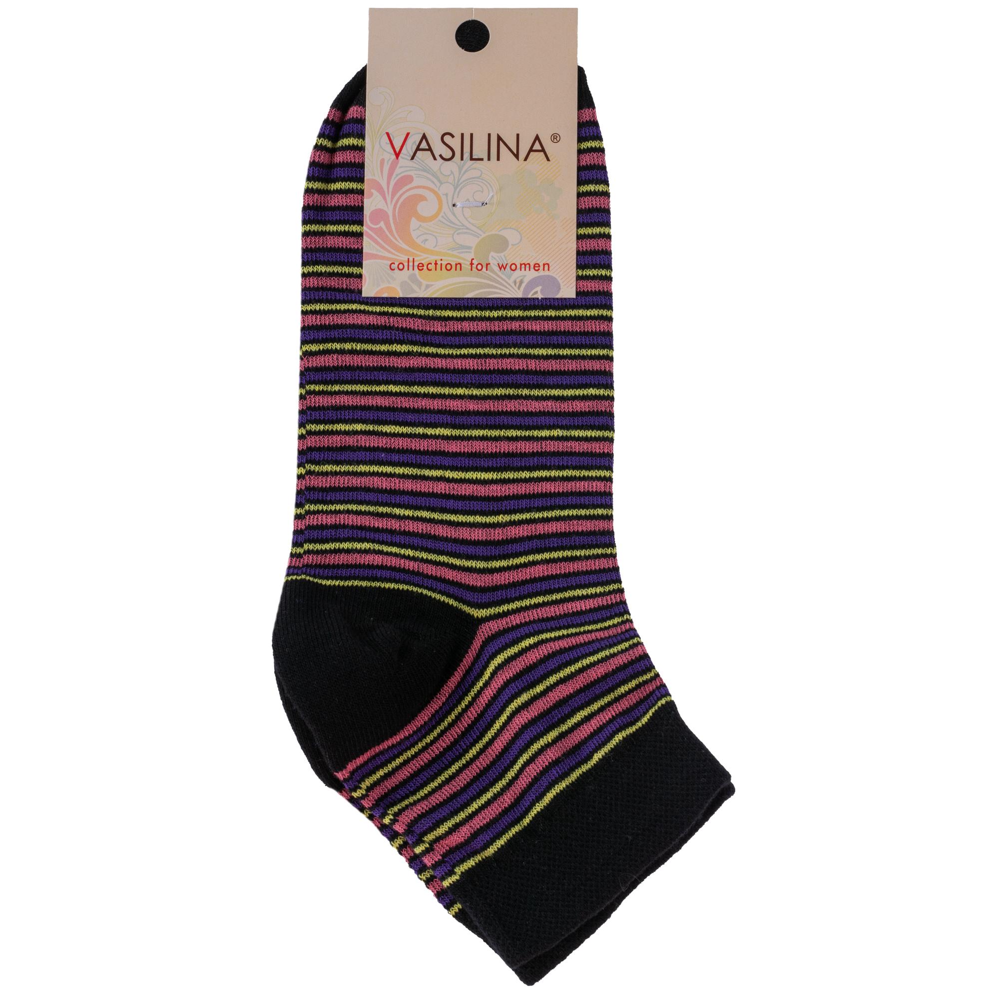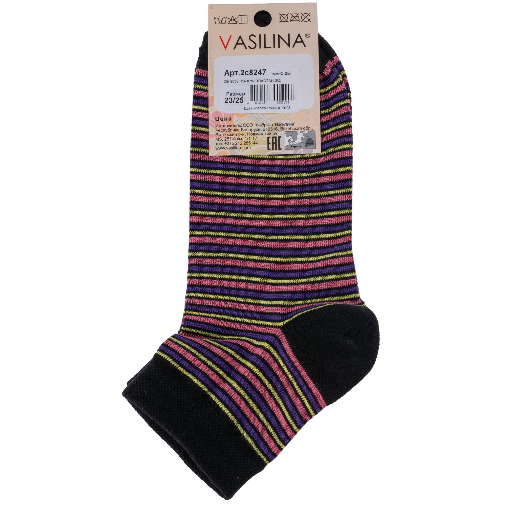 Круглогодичные укороченные женские носки, цвет многоцветные (мультиколор), классические, шов обычный (не бесшовные), принт (рисунок): полоски, с узором, состав: 80% хлопок, 18% полиэстер, 2% эластан, арт. 2С8247. Производитель «ООО Фабрика Василина, Беларусь» под брендом «Vasilina».
