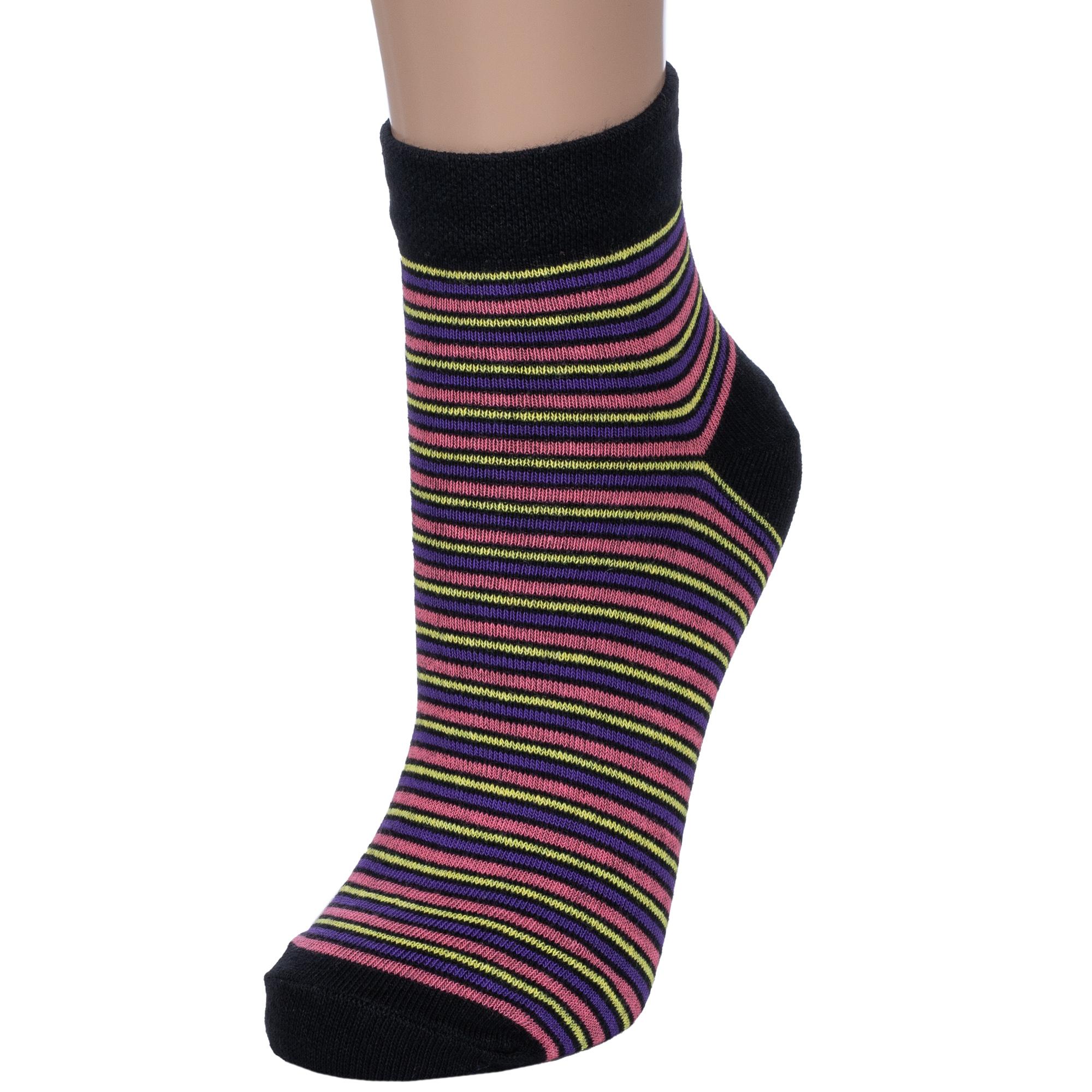 Женские носки VASILINA, 2С8247, ЧЕРНЫЕ с розовыми полосками