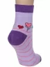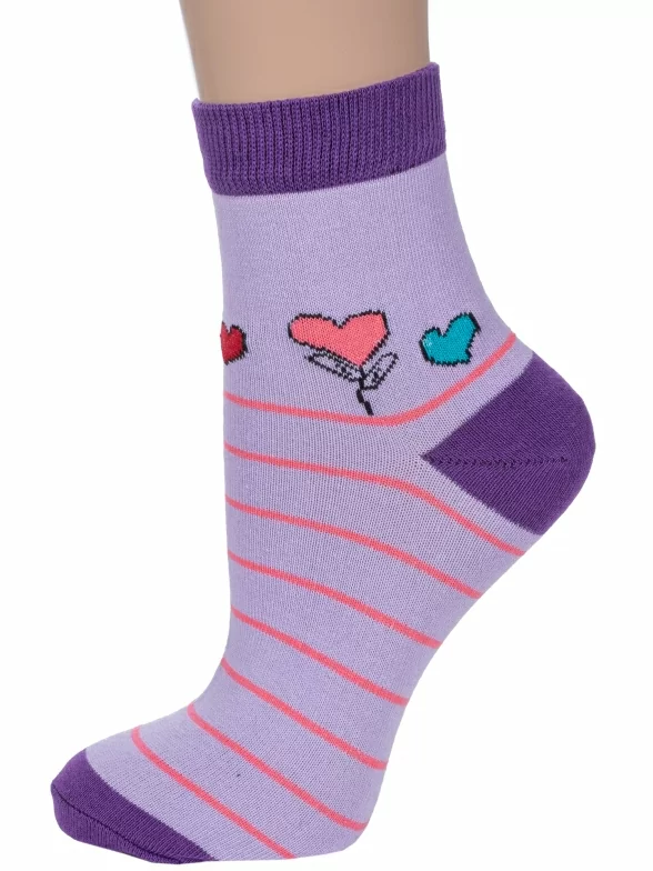 Круглогодичные укороченные женские носки, цвет сиреневый, повседневные, шов обычный (не бесшовные), принт (рисунок): сердечки / поцелуи / любовь, с узором, состав: 75% хлопок, 23% полиэстер, 2% эластан, арт. 7С3263. Производитель «ООО Фабрика Василина, Беларусь» под брендом «Vasilina».