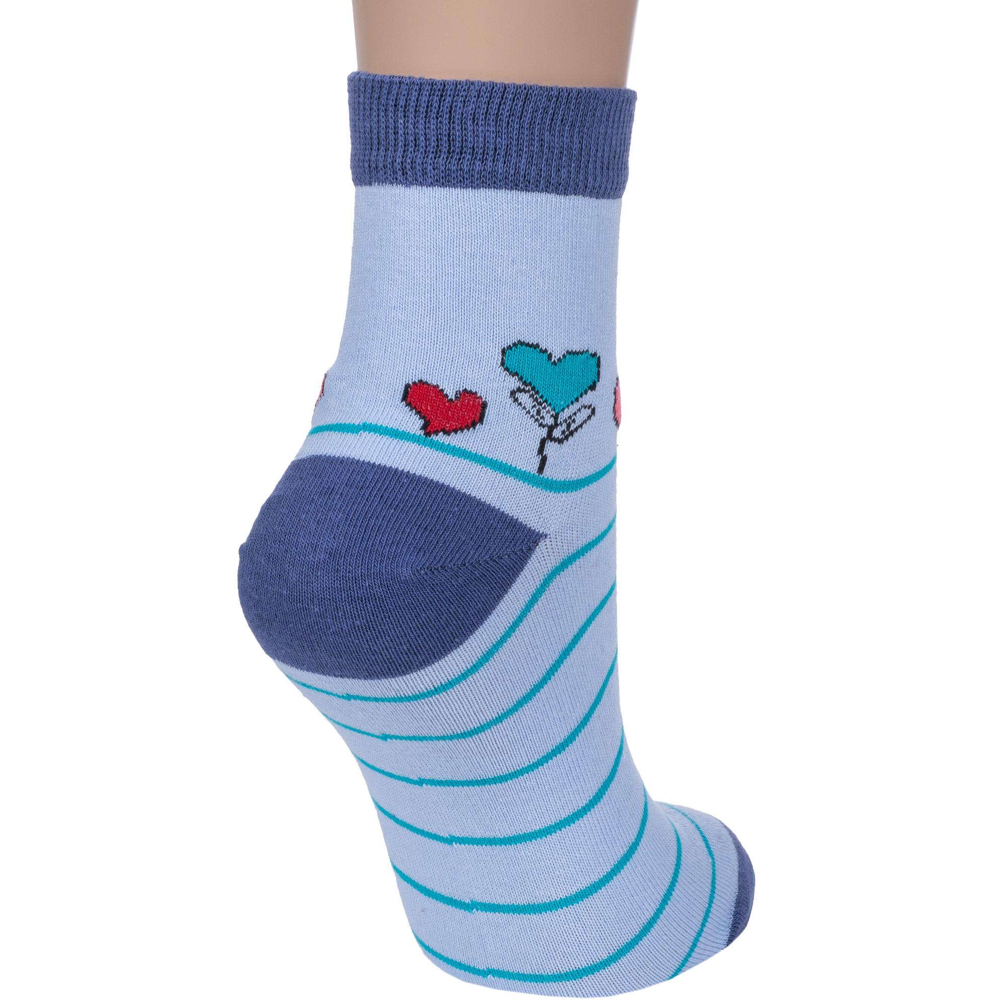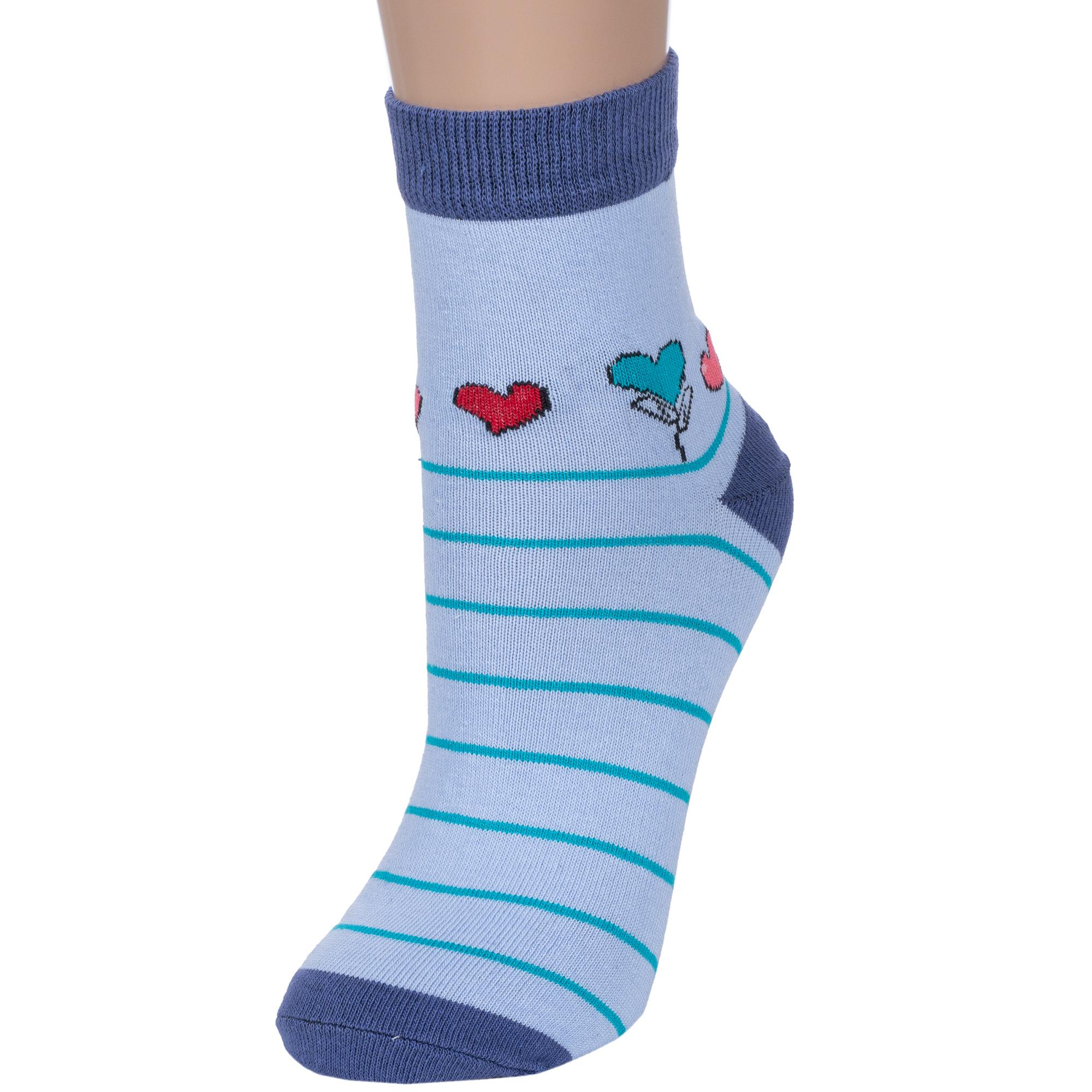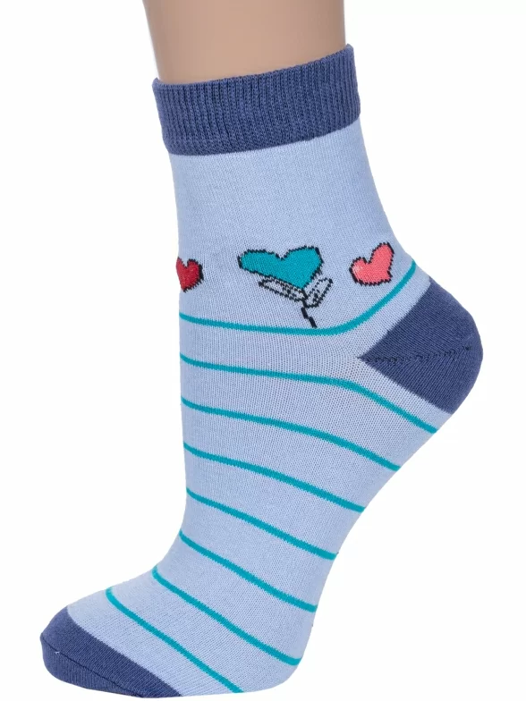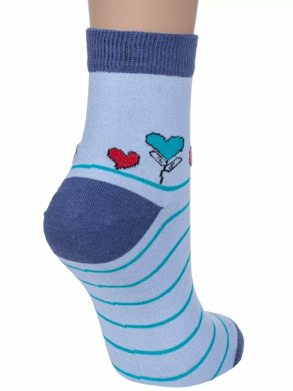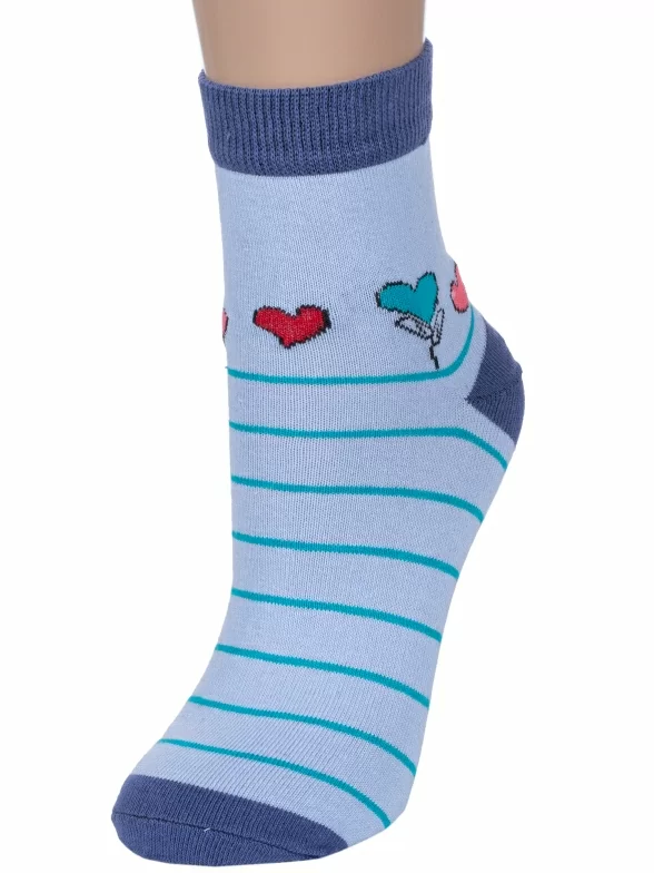 Круглогодичные укороченные женские носки, цвет голубой, повседневные, шов обычный (не бесшовные), принт (рисунок): сердечки / поцелуи / любовь, с узором, состав: 75% хлопок, 23% полиэстер, 2% эластан, арт. 7С3263. Производитель «ООО Фабрика Василина, Беларусь» под брендом «Vasilina».