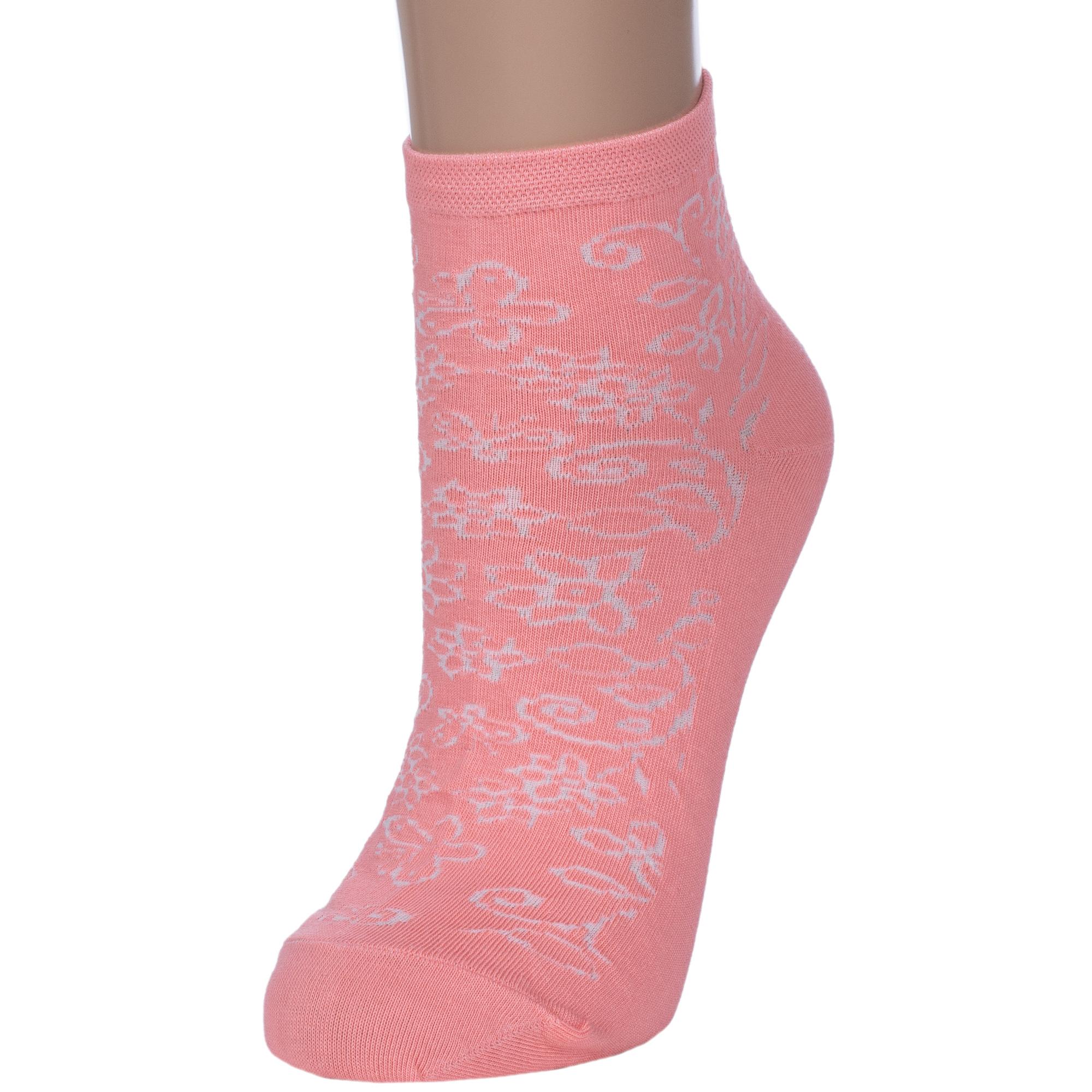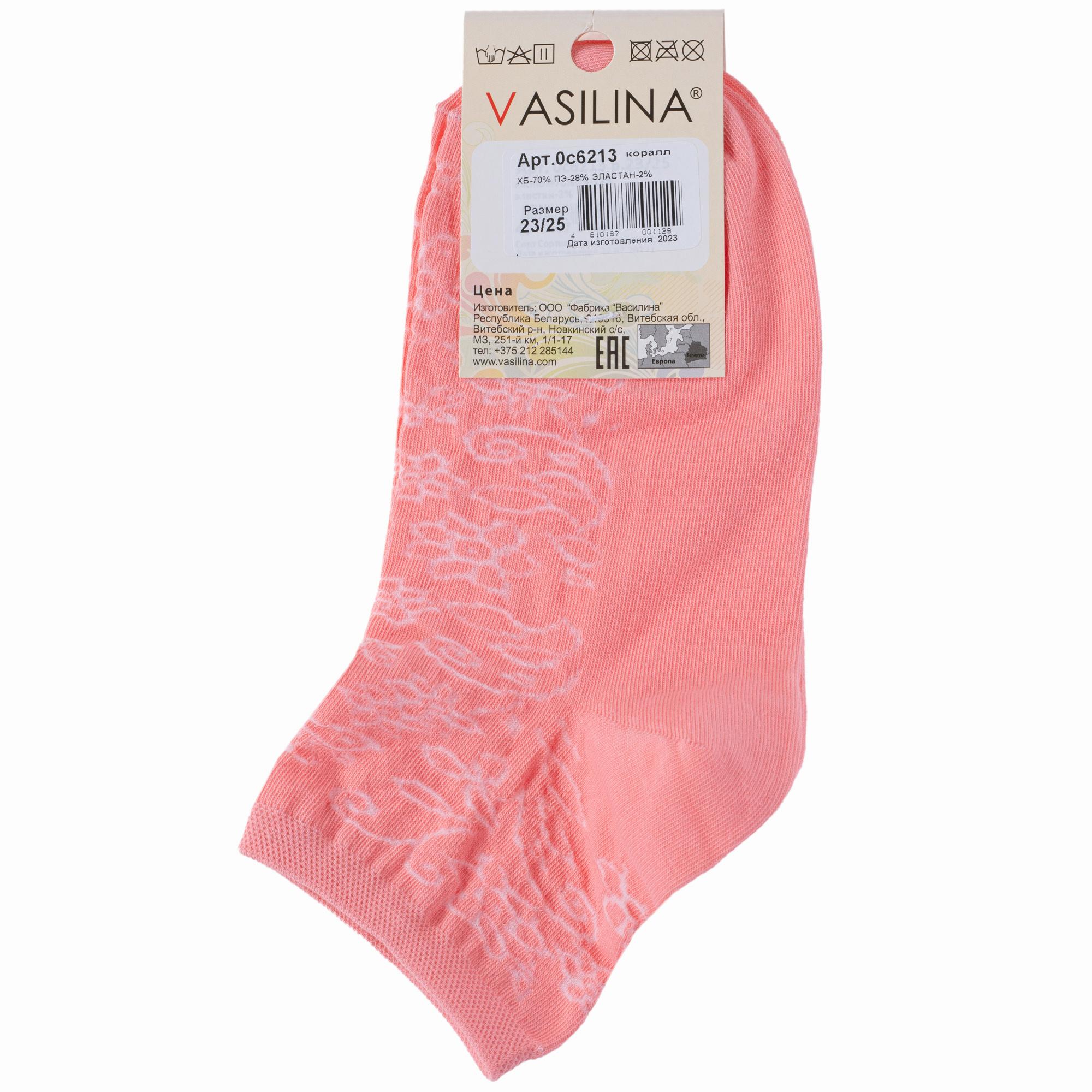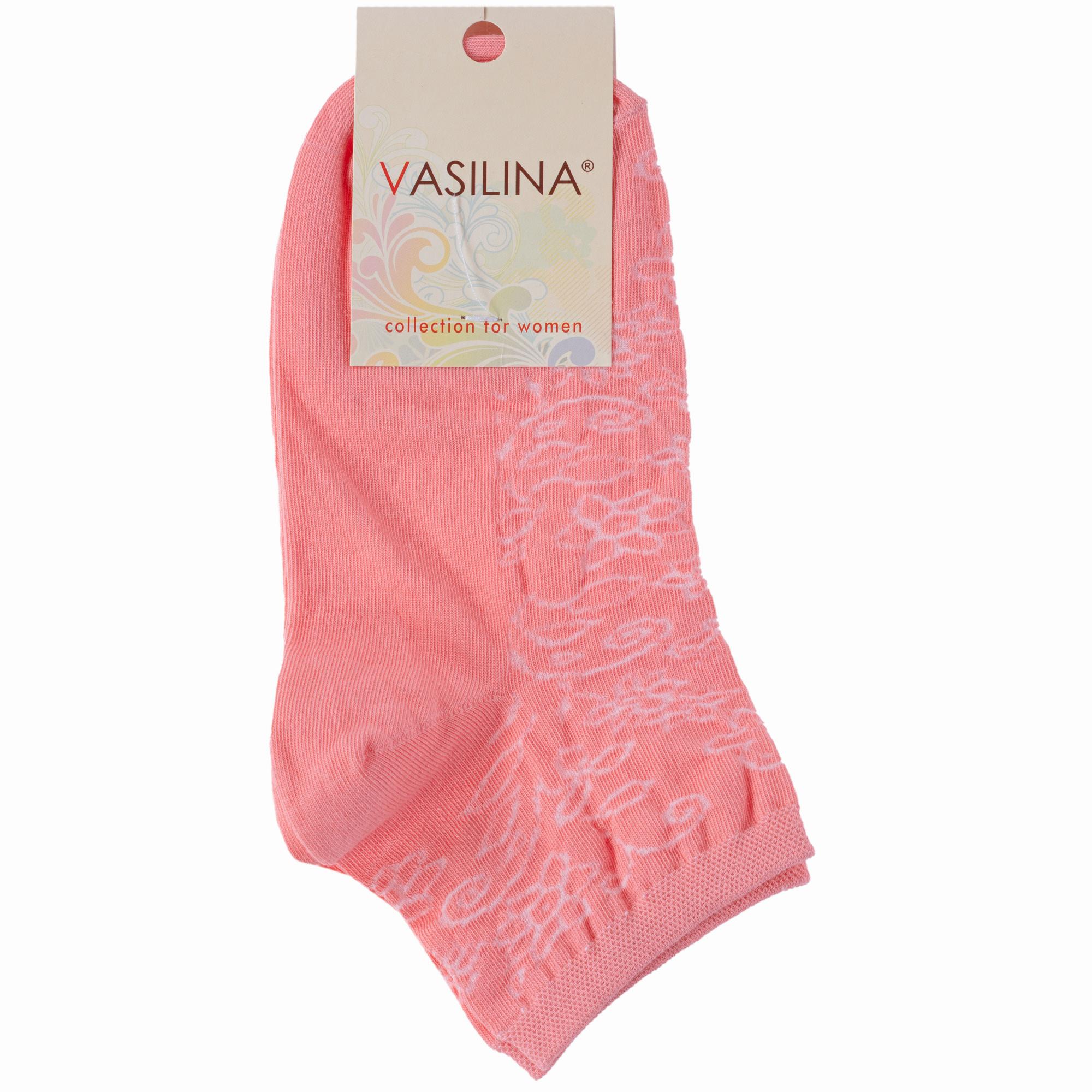 Летние короткие женские носки, цвет розовый, повседневные, шов обычный (не бесшовные), принт (рисунок): цветы / растения, кружево (или имитация), с узором, однотонный, состав: 70% хлопок, 28% полиэстер, 2% эластан, арт. 0С6213. Производитель «ООО Фабрика Василина, Беларусь» под брендом «Vasilina».
