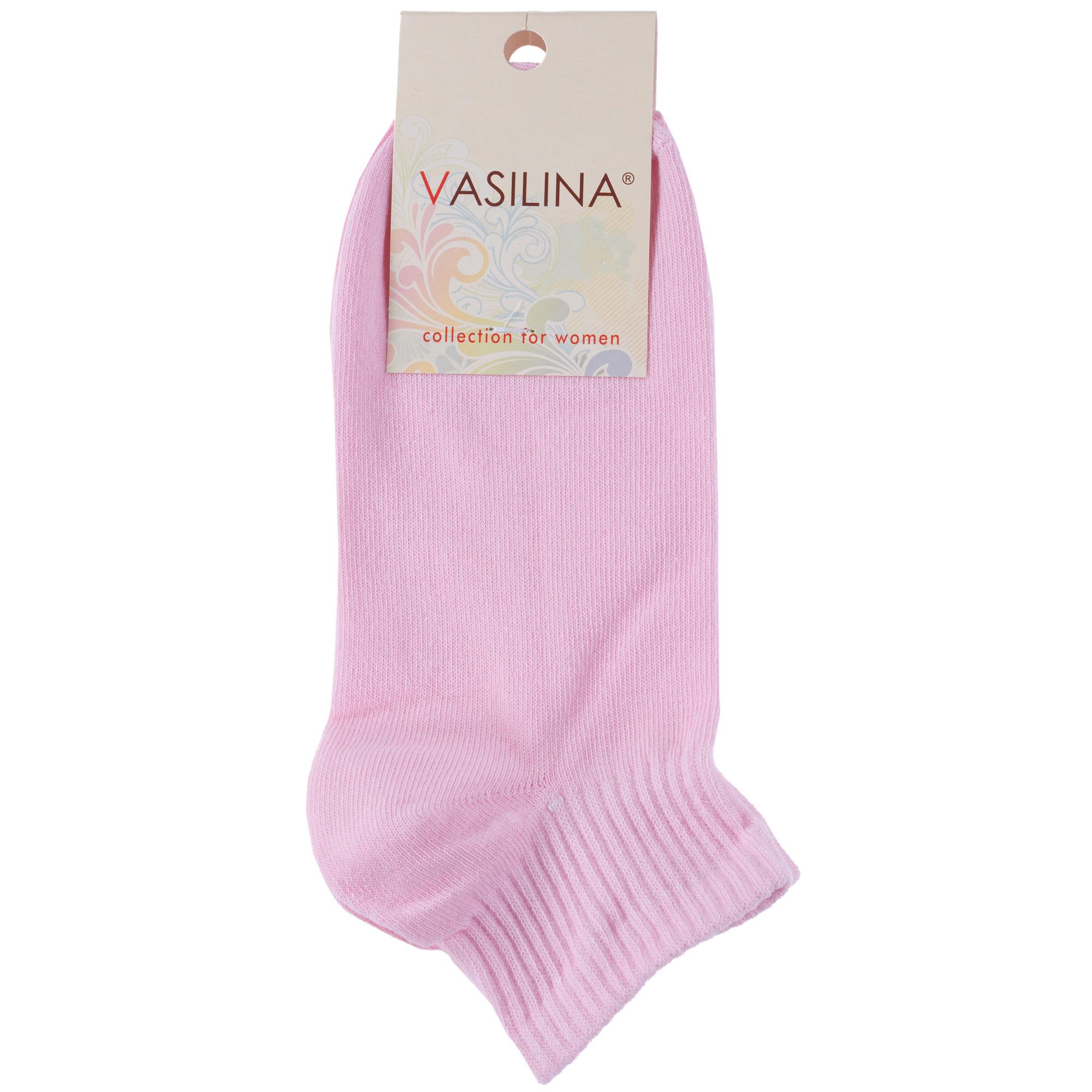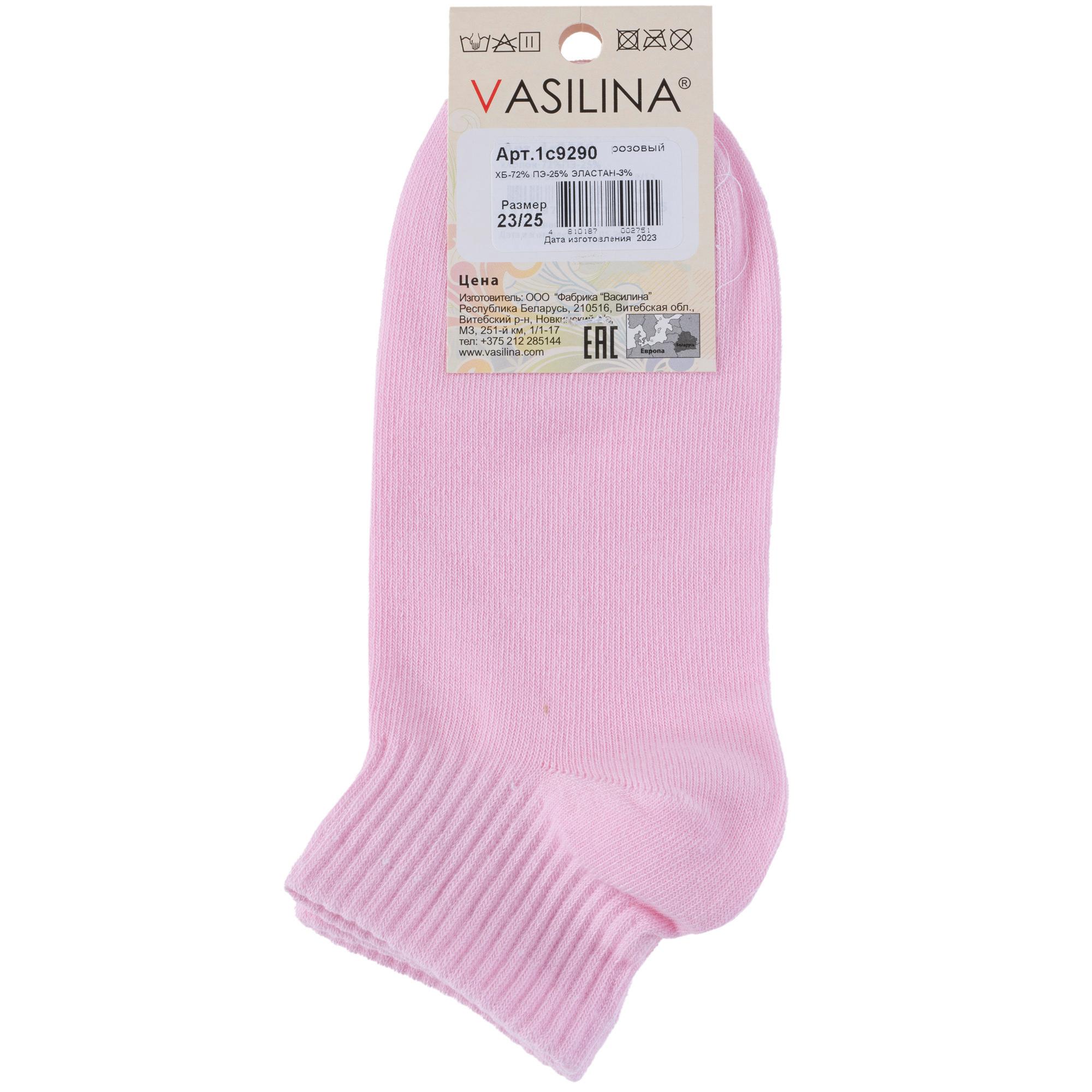 Круглогодичные короткие женские носки, цвет розовый, спортивные, классические, шов обычный (не бесшовные), принт (рисунок): в рубчик, однотонный, состав: 72% хлопок, 25% полиэстер, 3% эластан, арт. 1С9290. Производитель «ООО Фабрика Василина, Беларусь» под брендом «Vasilina».