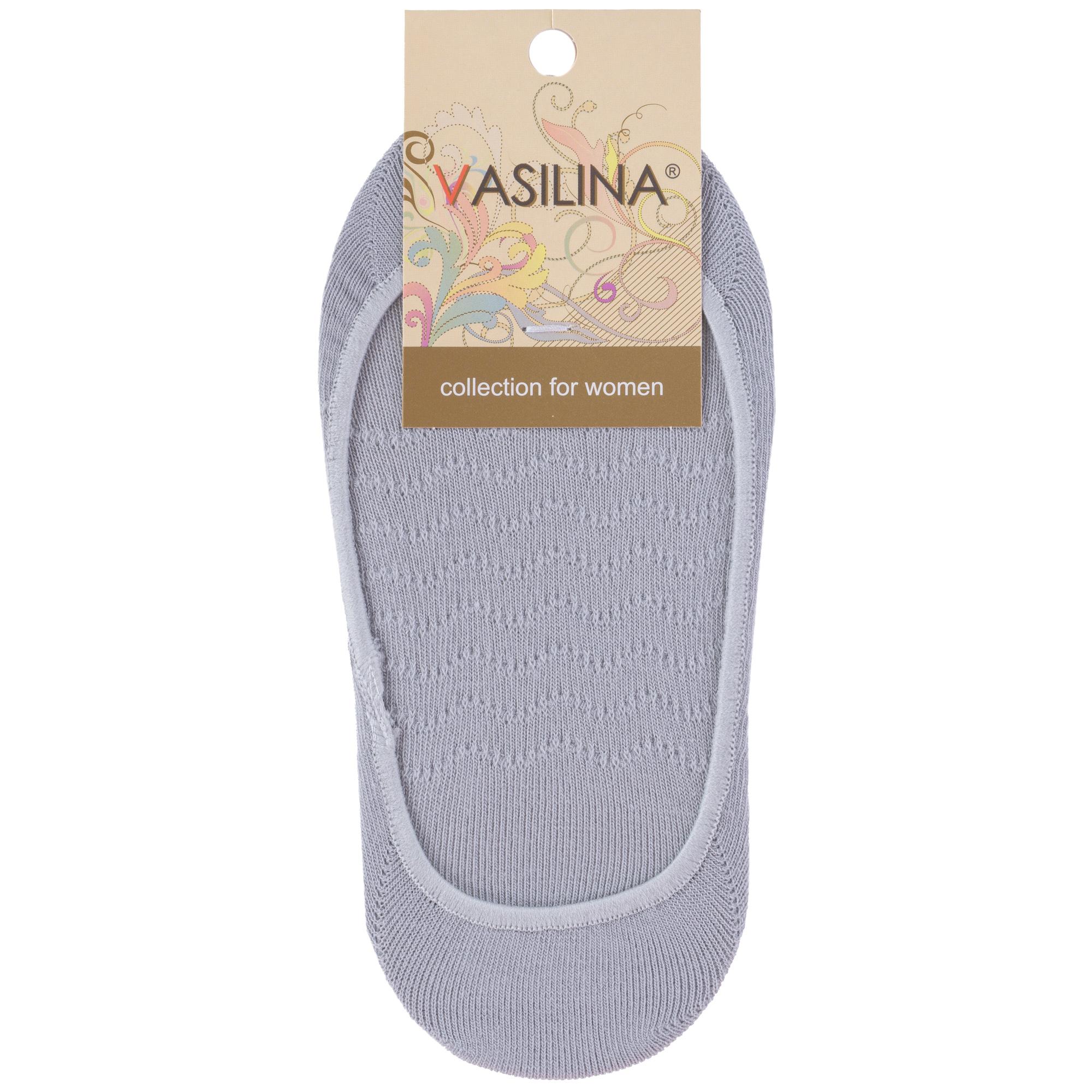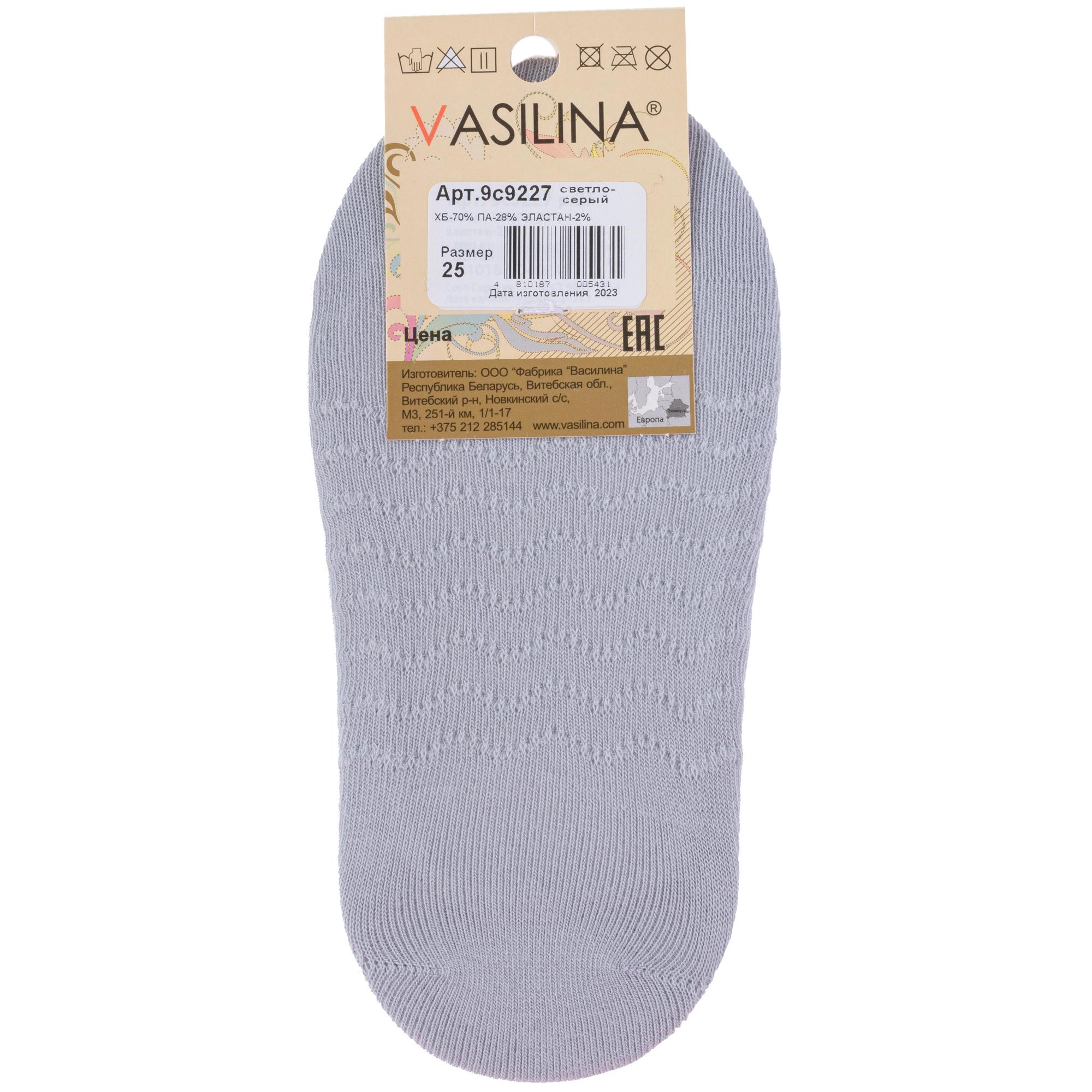 Летние женские подследники, цвет светло-серый, классические, шов обычный (не бесшовные), принт (рисунок): однотонный, состав: 70% хлопок, 28% полиамид, 2% эластан, арт. 9С9227. Производитель «ООО Фабрика Василина, Беларусь» под брендом «Vasilina».