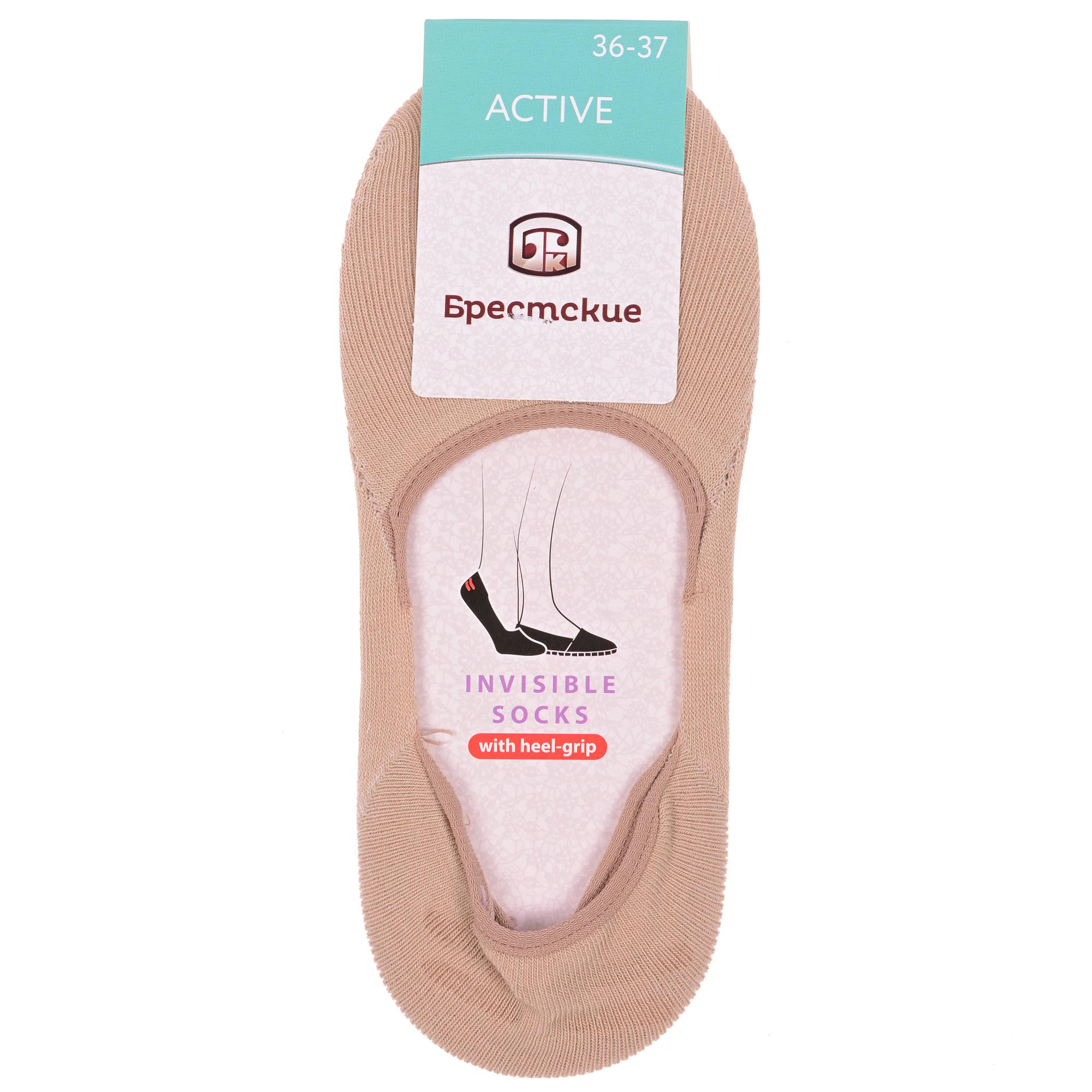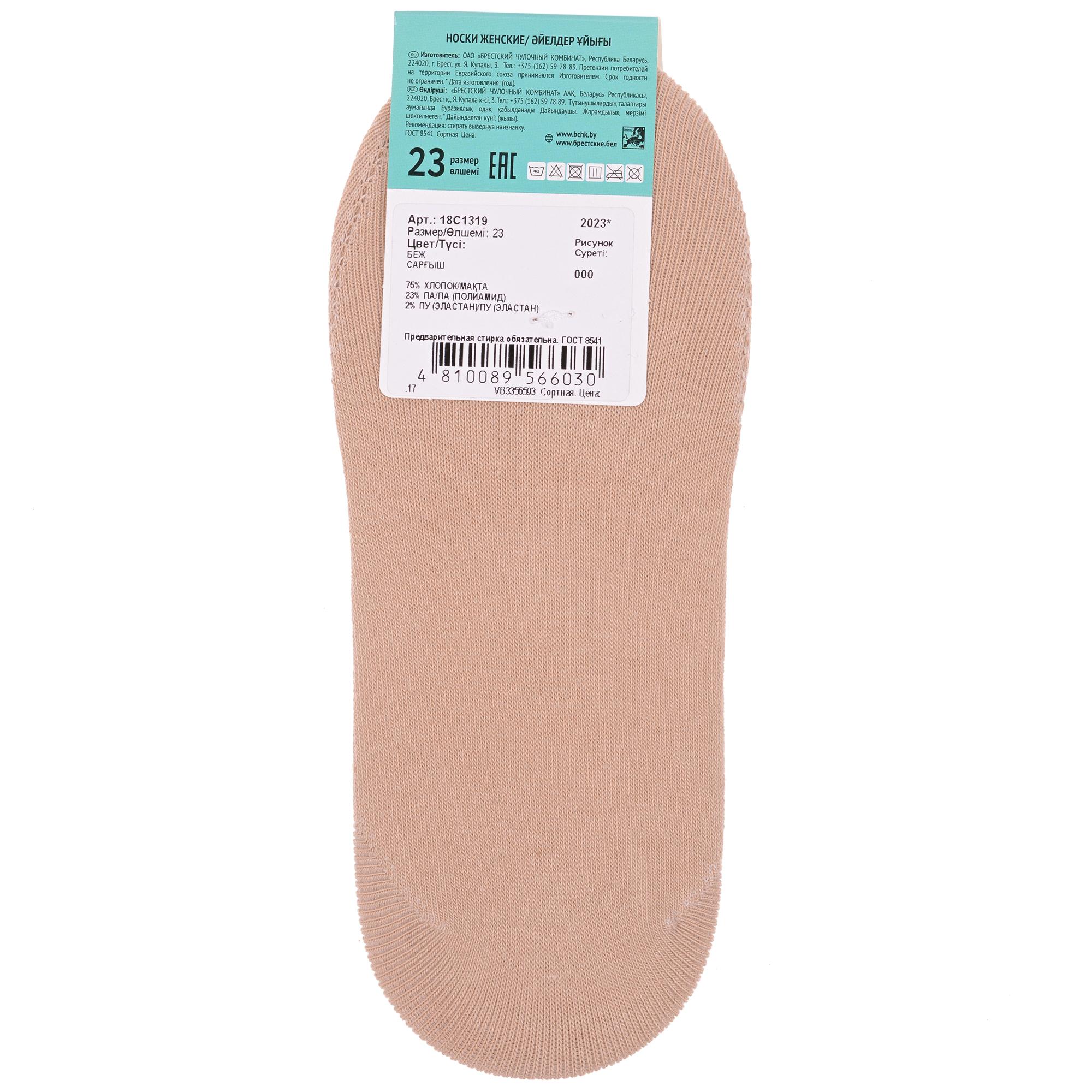 Летние женские подследники, цвет бежевый, с силиконовой вставкой, классические, конструкция без шва, принт (рисунок): однотонный, без рисунков/узоров, состав: 75% хлопок, 23% полиамид, 2% полиуретан, арт. 18C1319. Производитель «Брестский чулочный комбинат ОАО, Беларусь» под брендом «Брестские (бчк)».