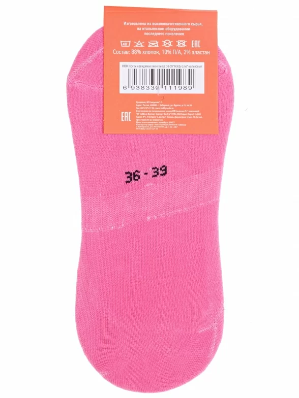 Летние женские подследники, цвет розовый, классические, шов обычный (не бесшовные), принт (рисунок): контрастные пятка / мысок / резинка, однотонный, состав: 88% хлопок, 10% полиамид, 2% эластан, арт. ННЖ. Производитель «Китай, страна бренда - Россия» под брендом «Hobby line».