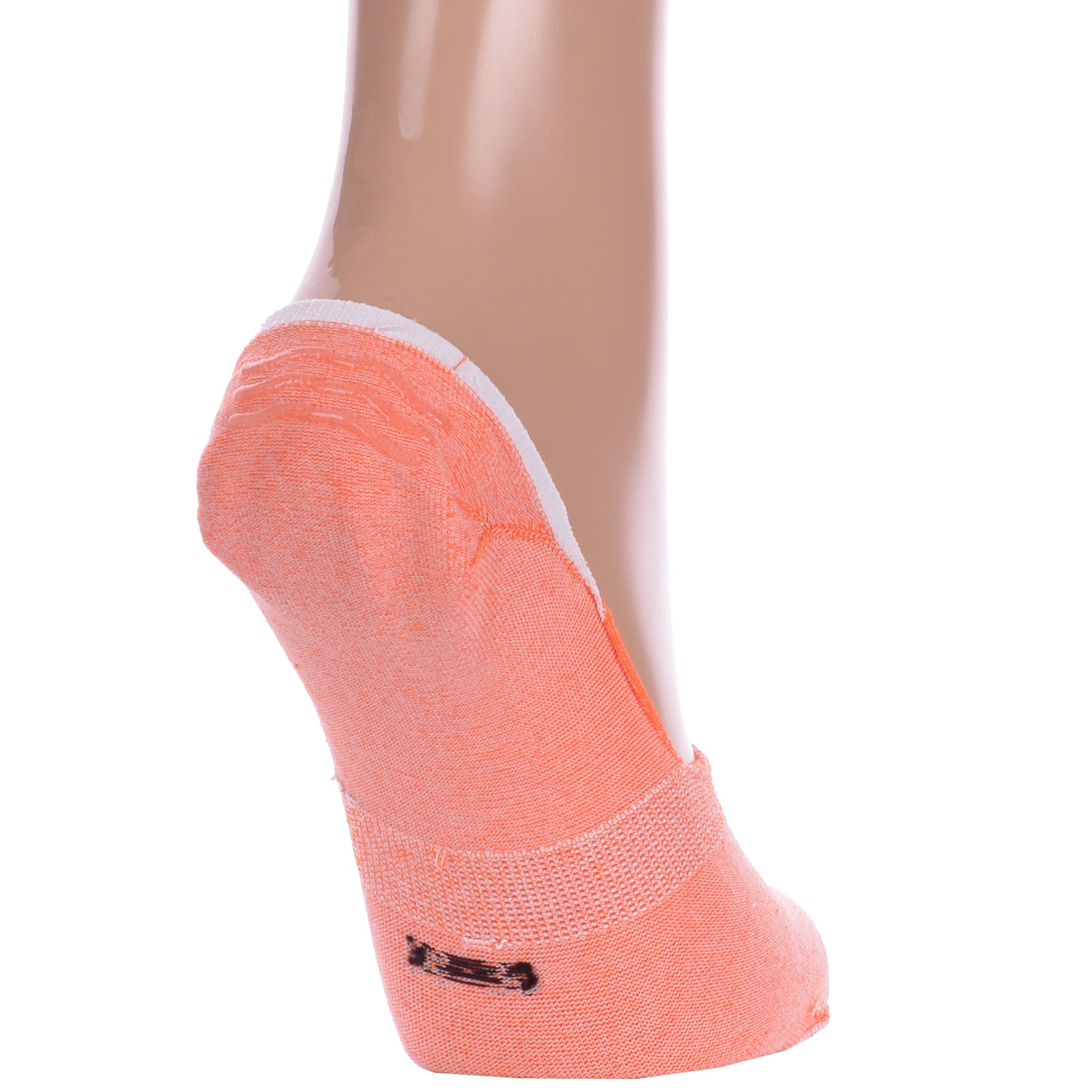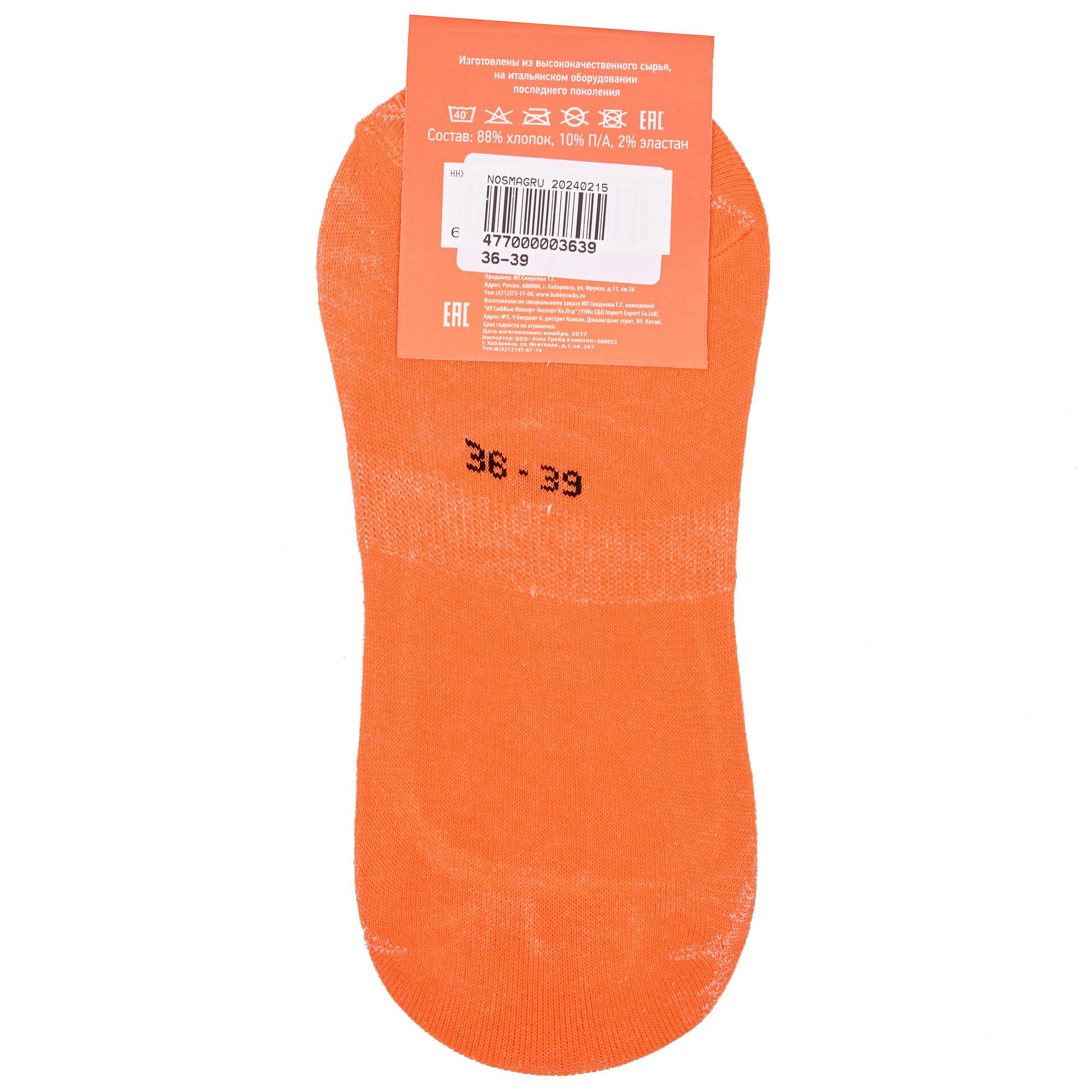 Летние женские подследники, цвет оранжевый, с силиконовой вставкой, классические, шов обычный (не бесшовные), принт (рисунок): однотонный, без рисунков/узоров, состав: 88% хлопок, 10% полиамид, 2% эластан, арт. ННЖ. Производитель «Китай, страна бренда - Россия» под брендом «Hobby line».