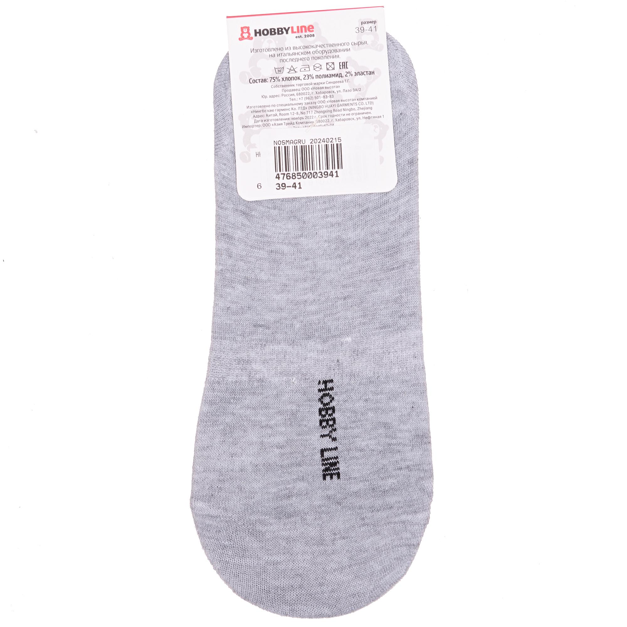 Летние женские подследники, цвет серый, с силиконовой вставкой, классические, шов обычный (не бесшовные), принт (рисунок): однотонный, без рисунков/узоров, состав: 75% хлопок, 23% полиамид, 2% эластан, арт. ННЖ. Производитель «Китай, страна бренда - Россия» под брендом «Hobby line».