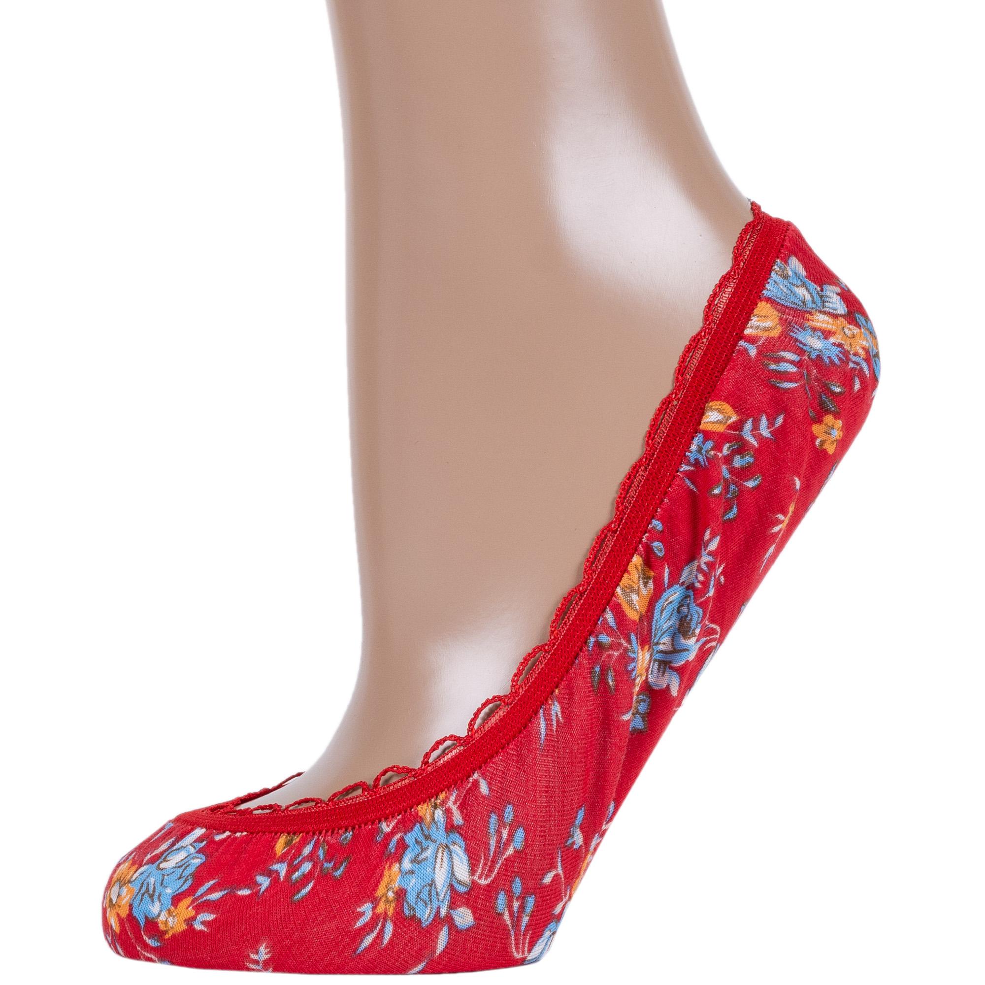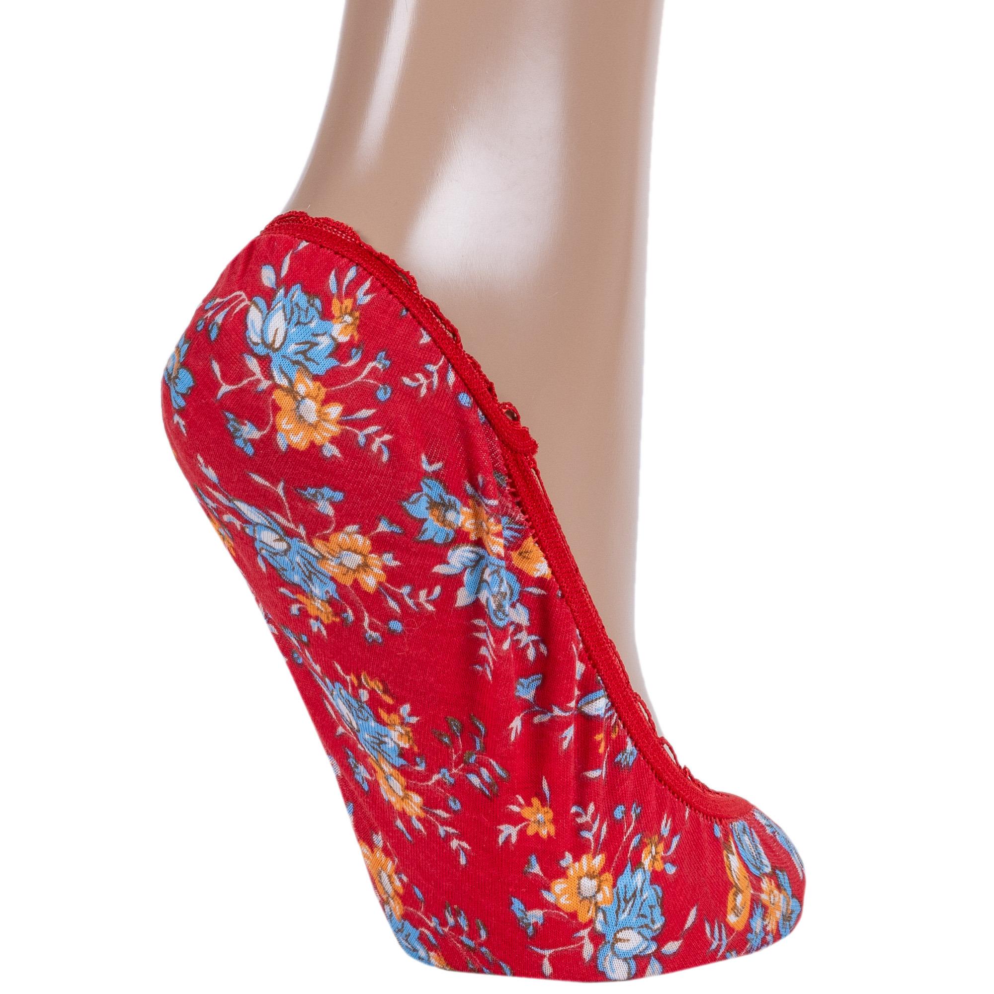 Летние женские подследники, цвет красный, повседневные, конструкция без шва, принт (рисунок): цветы / растения, с узором, состав: 98% микрофибра, 2% эластан, арт. 2.5.235. Производитель «Oztas» Турция под брендом «Oztas».