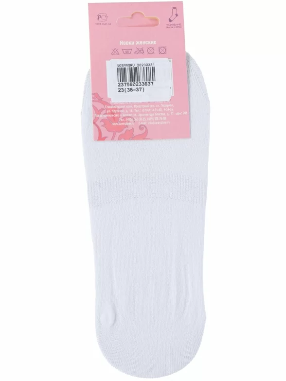 Летние женские подследники, цвет белый, в сеточку, классические, шов кеттельный (бесшовная технология), принт (рисунок): однотонный, состав: 85% хлопок, 10% полиамид, 5% эластан (лайкра), арт. И20. Производитель «ИП Мурзаков В.А., Ставропольский край, Россия» под брендом «Lorenzline».