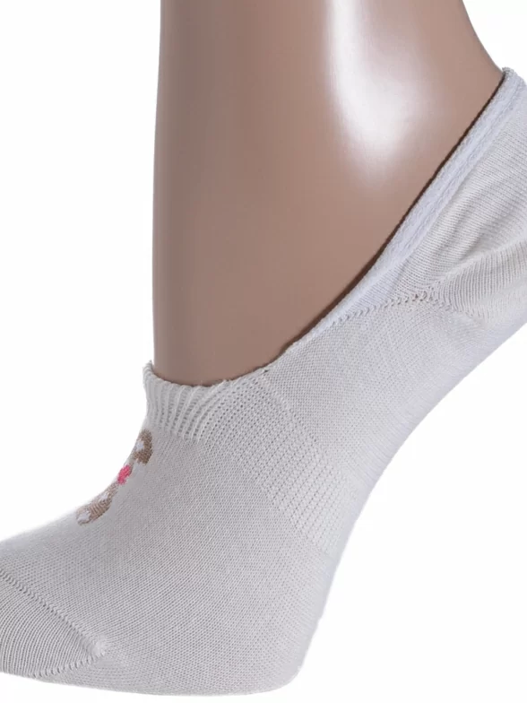 Летние женские подследники, цвет кремовый, повседневные, шов кеттельный (бесшовная технология), принт (рисунок): животные, с узором, сердечки / поцелуи / любовь, крупные контрастные рисунки, состав: 85% хлопок, 10% полиамид, 5% эластан (лайкра), арт. И29. Производитель «ИП Мурзаков В.А., Ставропольский край, Россия» под брендом «Lorenzline».