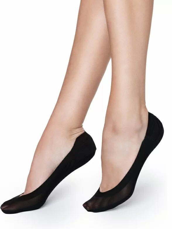 Модель закрывает только пальцы, оставляя открытым весь подъем стопы, поэтому она отлично подойдет для балеток, мокасин и другой низкой обуви. Сзади изнутри расположена силиконовая полоса, предотвращающая соскальзывание скроенных по форме стопы подследников, а удлиненный задник защищает щиколотку от натирания.