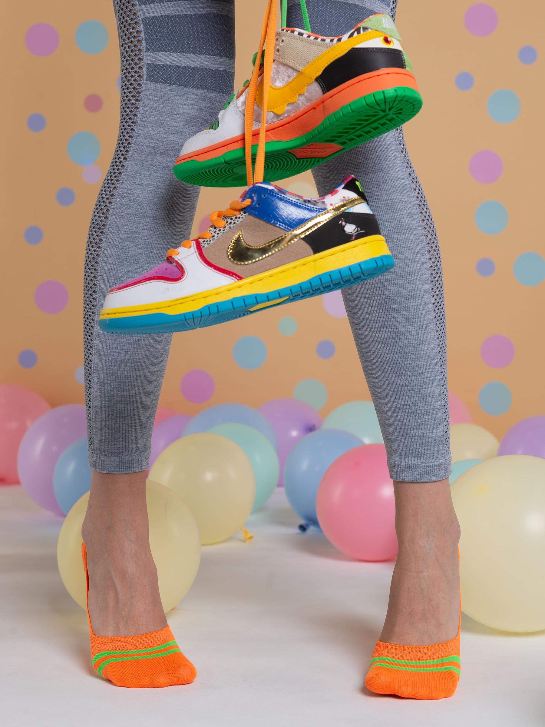 Летние женские подследники, цвет оранжевый, с силиконовой вставкой, классические, конструкция без шва, принт (рисунок): полоски, состав: 97% хлопок, 3% лайкра, арт. PW125. Производитель «Oemen» Китай под брендом «Oemen».