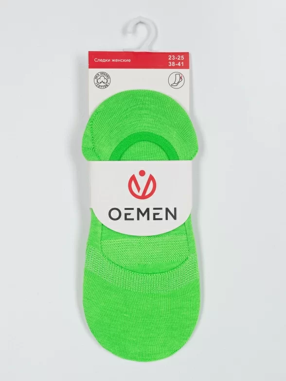 Летние женские подследники, цвет салатовый, с силиконовой вставкой, классические, конструкция без шва, принт (рисунок): однотонный, без рисунков / узоров, состав: 97% хлопок, 3% лайкра, арт. PW154. Производитель «Oemen» Китай под брендом «Oemen».