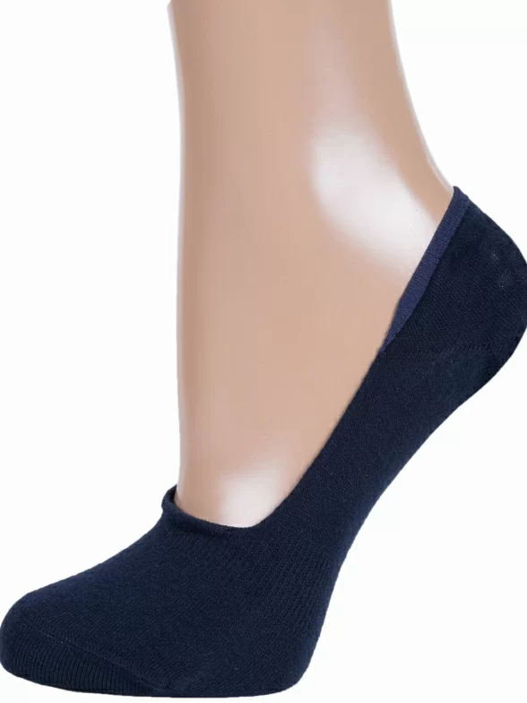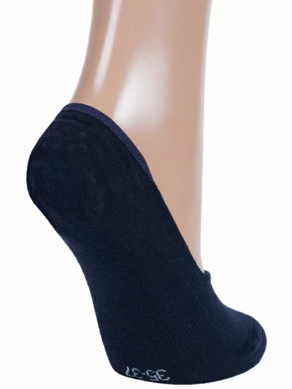 Летние женские подследники, цвет темно-синий, классические, с силиконовой вставкой, шов кеттельный (бесшовная технология), принт (рисунок): однотонный, без рисунков/узоров, состав: 72% хлопок, 25% полиамид, 3% эластан, арт. Ж-2220. Производитель «ООО Орудьевский трикотаж, Россия» под брендом «Rusocks (орудьевский трикотаж)».
