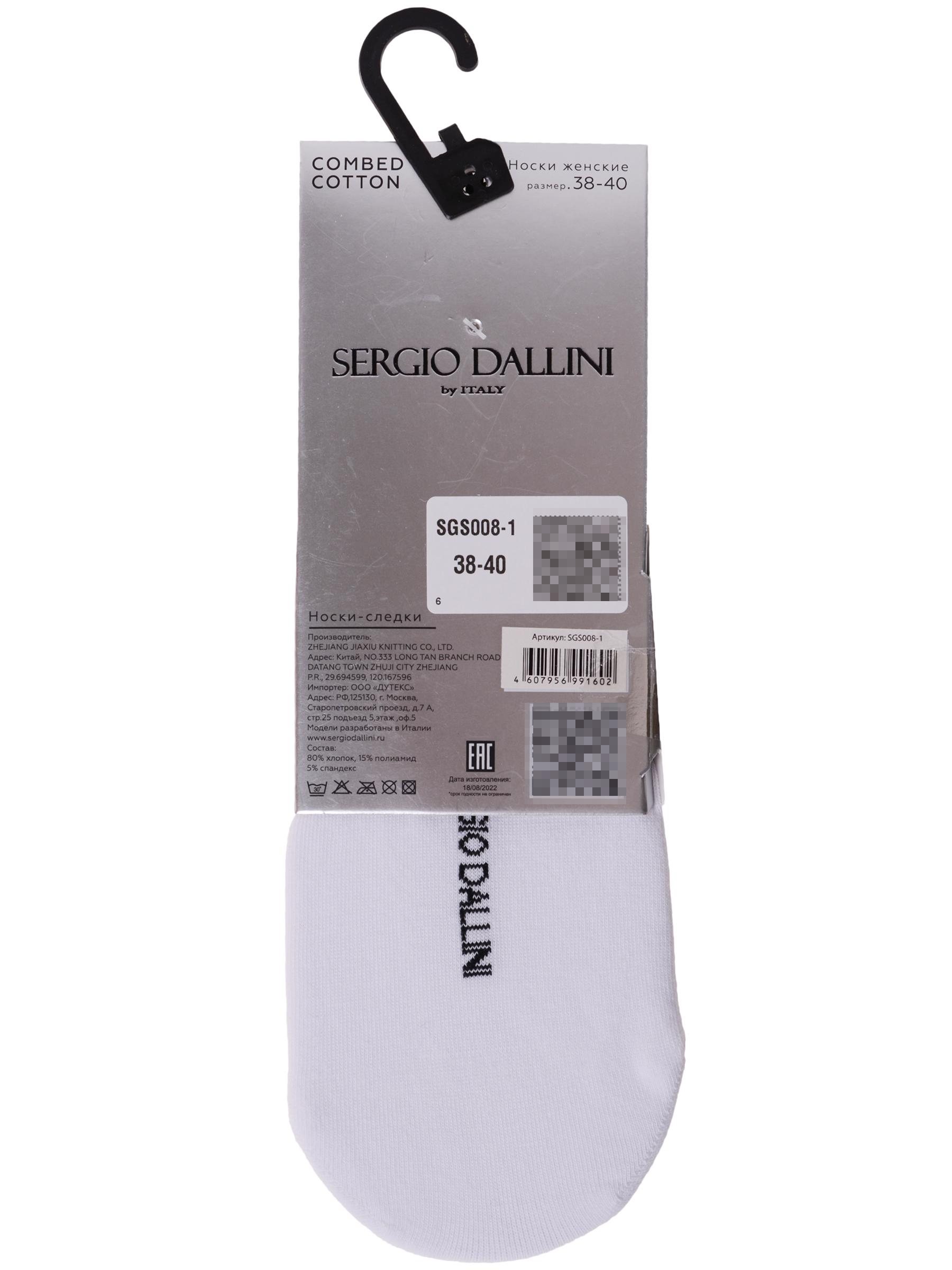 Летние женские подследники, цвет белый, с силиконовой вставкой, классические, шов плоский, принт (рисунок): однотонный, без рисунков / узоров, состав: 80% хлопок, 15% полиамид, 5% эластан, арт. SGS008-1. Производитель «Китай, страна бренда - Италия» под брендом «Sergio dallini».