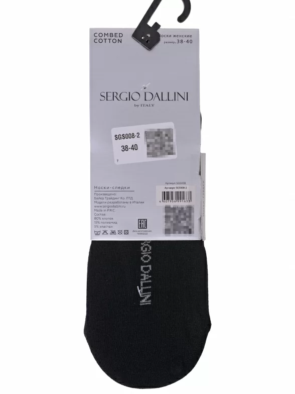 Летние женские подследники, цвет черный, с силиконовой вставкой, классические, шов плоский, принт (рисунок): однотонный, без рисунков / узоров, состав: 80% хлопок, 15% полиамид, 5% эластан, арт. SGS008-2. Производитель «Китай, страна бренда - Италия» под брендом «Sergio dallini».