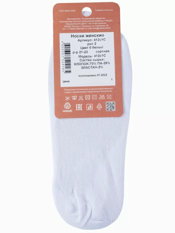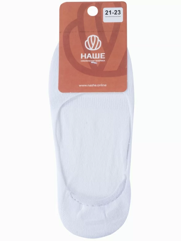 Летние женские подследники, цвет белый, классические, шов обычный (не бесшовные), принт (рисунок): однотонный, без рисунков/узоров, состав: 70% хлопок, 28% полиамид, 2% эластан, арт. 412С1С. Производитель «Смоленская чулочная фабрика, Россия» под брендом «Наше смоленской чулочной фабрики».