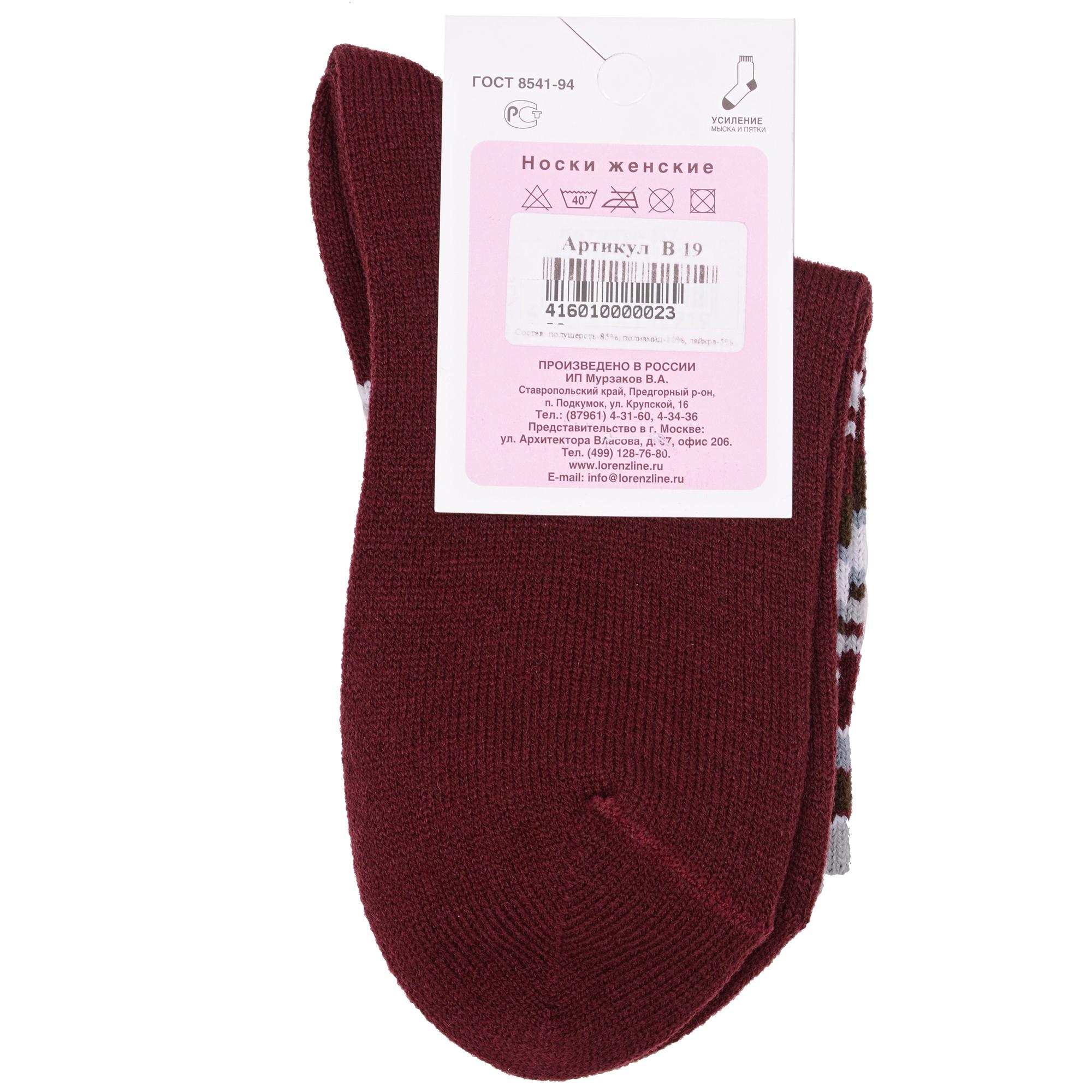 Зимние укороченные женские носки, цвет бордовый, теплые, повседневные, возможно бесшовные, принт (рисунок): полоски, с узором, состав: 85% полушерсть, 10% полиамид, 5% эластан (лайкра), арт. В19. Производитель «ИП Мурзаков В.А., Ставропольский край, Россия» под брендом «Lorenzline».