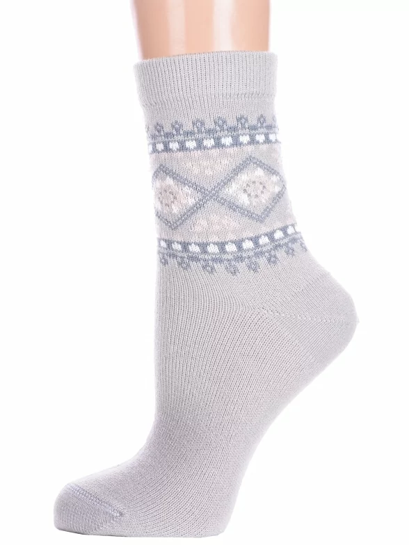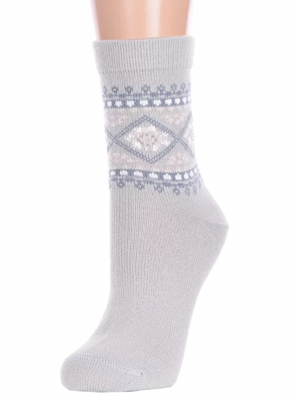 Зимние укороченные женские носки, цвет серый, теплые, повседневные, возможно бесшовные, принт (рисунок): норвежский жаккард, зимний, с узором, состав: 85% полушерсть, 10% полиамид, 5% лайкра, арт. В15. Производитель «ИП Мурзаков В.А., Ставропольский край, Россия» под брендом «Lorenzline».