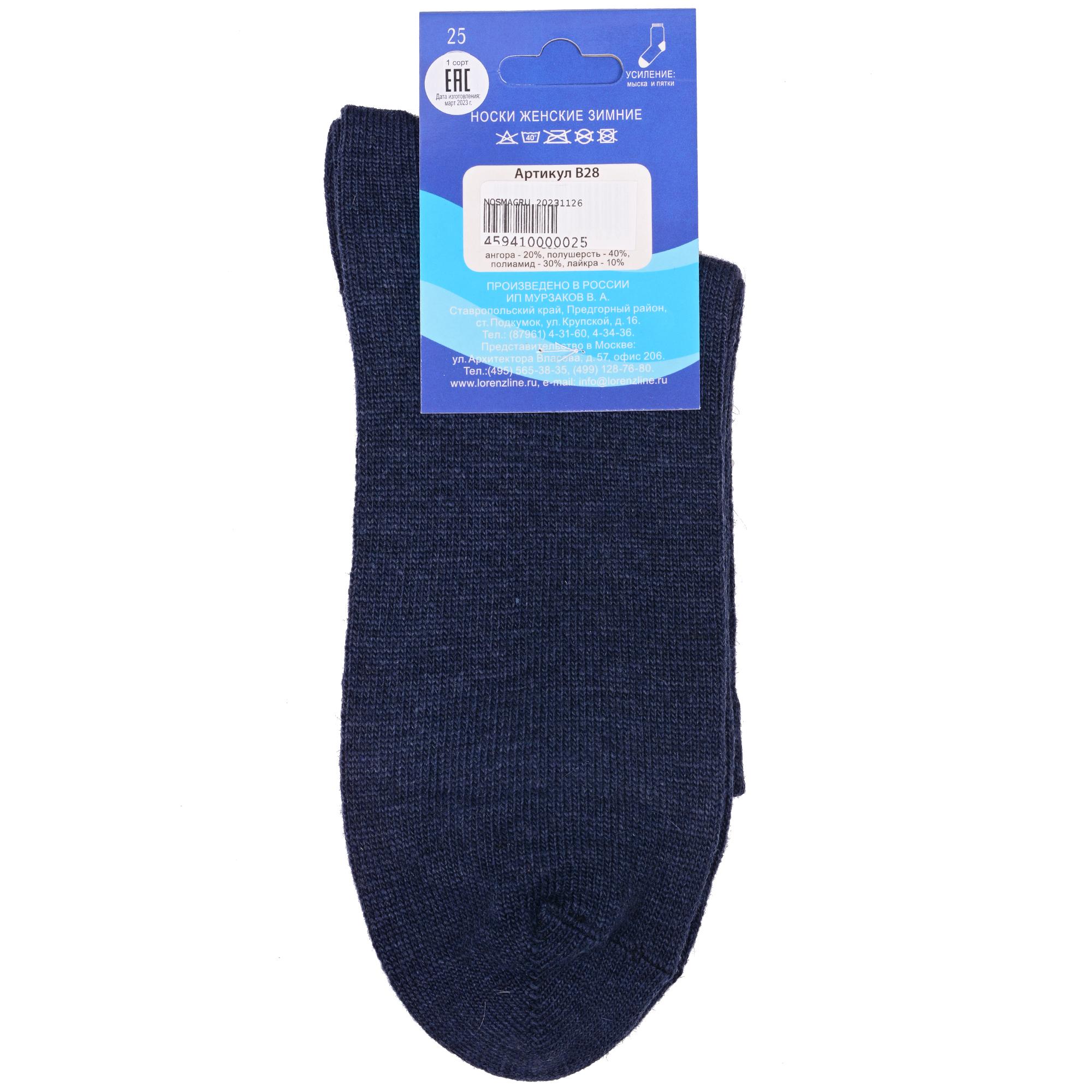 Зимние укороченные женские носки, цвет синий, теплые, шов обычный (не бесшовные), принт (рисунок): однотонный, без рисунков/узоров, состав: 40% полушерсть, 20% ангора, 30% полиамид, 10% лайкра, арт. В28. Производитель «ИП Мурзаков В.А., Ставропольский край, Россия» под брендом «Lorenzline».