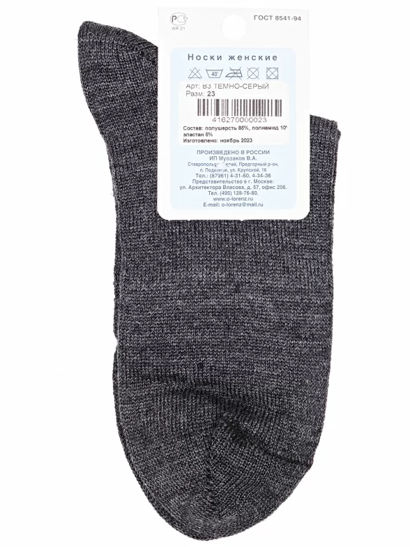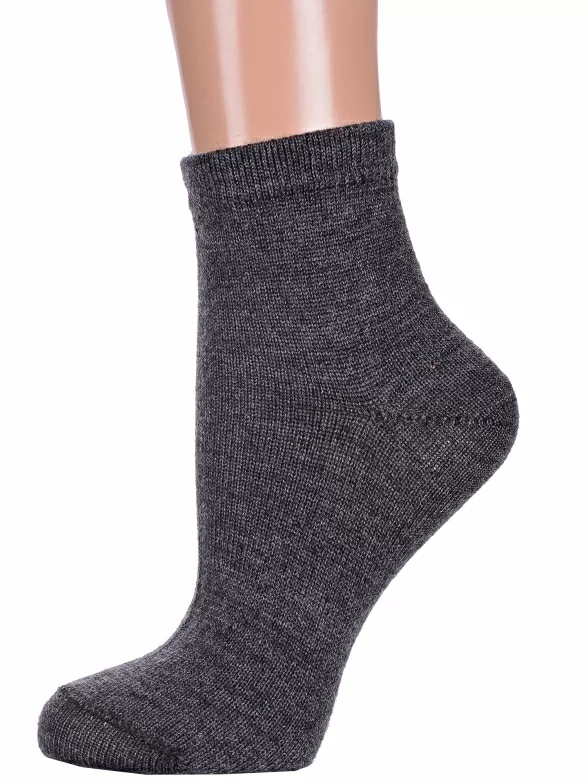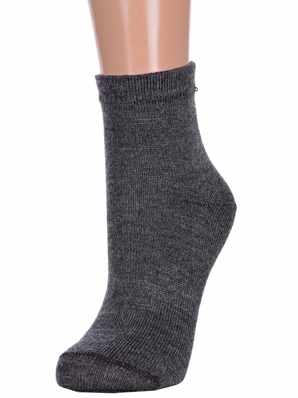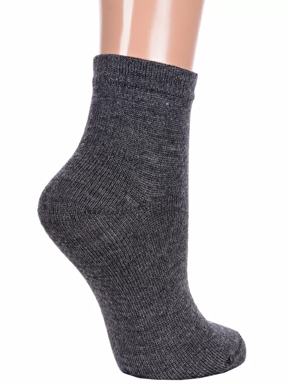 Зимние укороченные женские носки, цвет темно-серый, теплые, шов обычный (не бесшовные), принт (рисунок): однотонный, без рисунков/узоров, состав: 85% полушерсть, 10% полиамид, 5% эластан, арт. В3. Производитель «ИП Мурзаков В.А., Ставропольский край, Россия» под брендом «Lorenzline».
