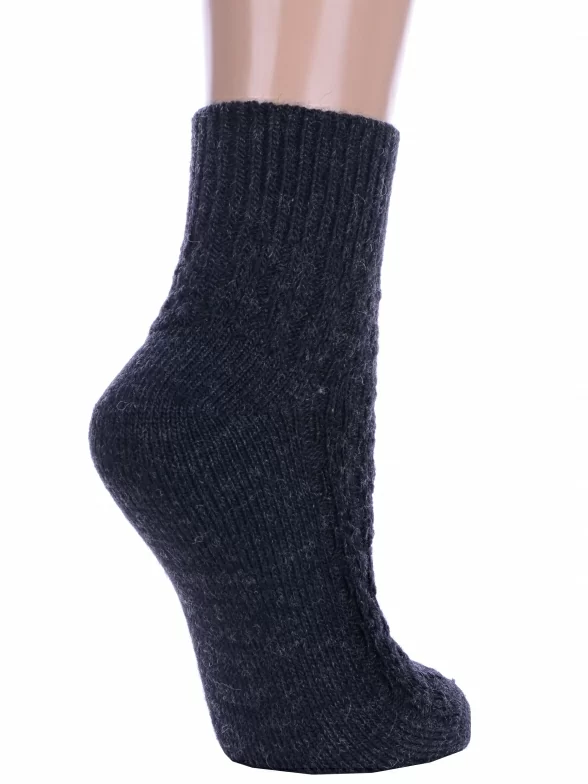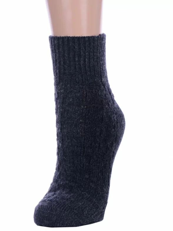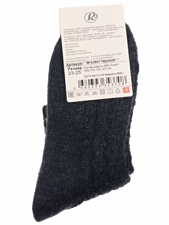 Зимние укороченные женские носки, цвет черный, теплые, возможно бесшовные, принт (рисунок): с узором, однотонный, состав: 68% шерсть, 18% акрил, 12% полиамид, 2% эластан, арт. Ж-23801. Производитель «ООО Орудьевский трикотаж, Россия» под брендом «Rusocks (орудьевский трикотаж)».