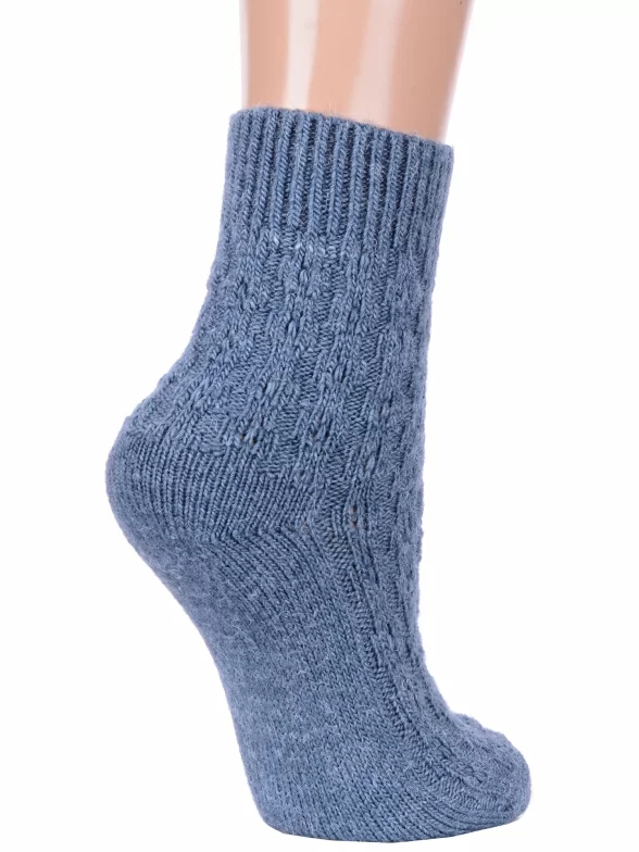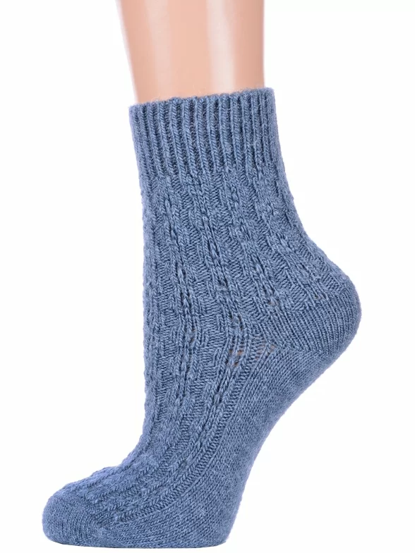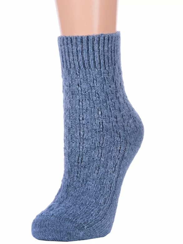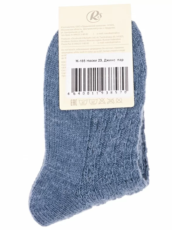 Зимние укороченные женские носки, цвет джинс, теплые, возможно бесшовные, принт (рисунок): с узором, однотонный, состав: 10% шерсть, 80% ПАН, 9% полиамид, 1% эластан, арт. Ж-185. Производитель «ООО Орудьевский трикотаж, Россия» под брендом «Rusocks (орудьевский трикотаж)».