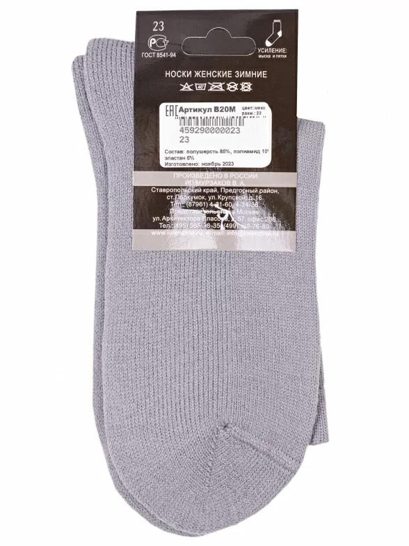 Зимние укороченные женские носки, цвет серый, теплые, повседневные, с махровым следом, возможно бесшовные, принт (рисунок): орнамент, новый год, зимний, с узором, состав: 85% полушерсть, 10% полиамид, 5% эластан, арт. В20М. Производитель «ИП Мурзаков В.А., Ставропольский край, Россия» под брендом «Lorenzline».