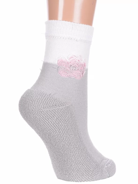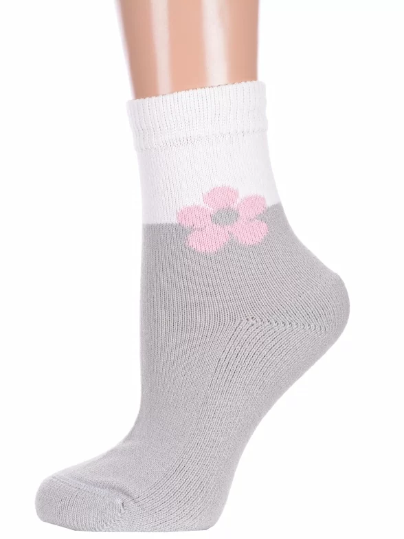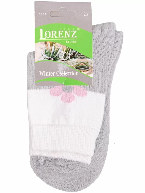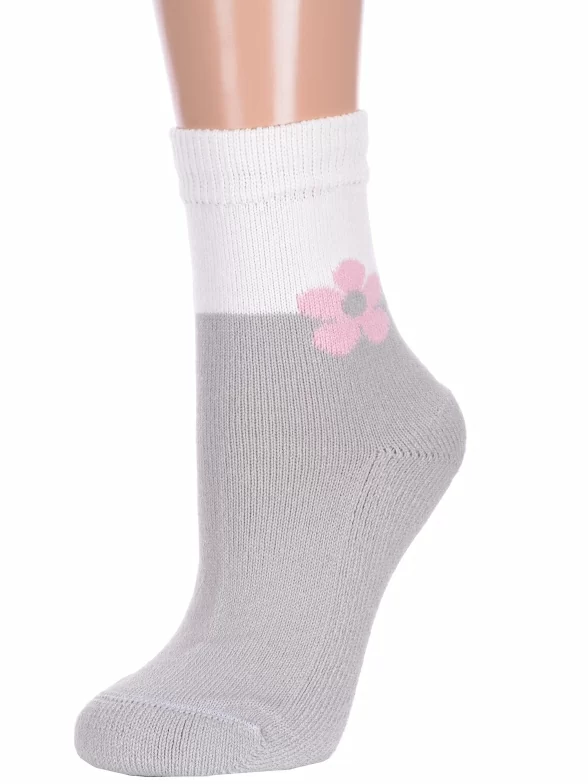 Зимние укороченные женские носки, цвет светло-серый, теплые, повседневные, с махровым следом, шов плоский, принт (рисунок): цветы / растения, с узором, состав: 85% полушерсть, 10% полиамид, 5% лайкра, арт. В14М. Производитель «ИП Мурзаков В.А., Ставропольский край, Россия» под брендом «Lorenzline».