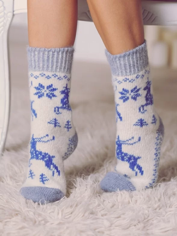 Женские шерстяные носки (Бабушкины носки), N6R34-2, БЕЛО-ГОЛУБЫЕ