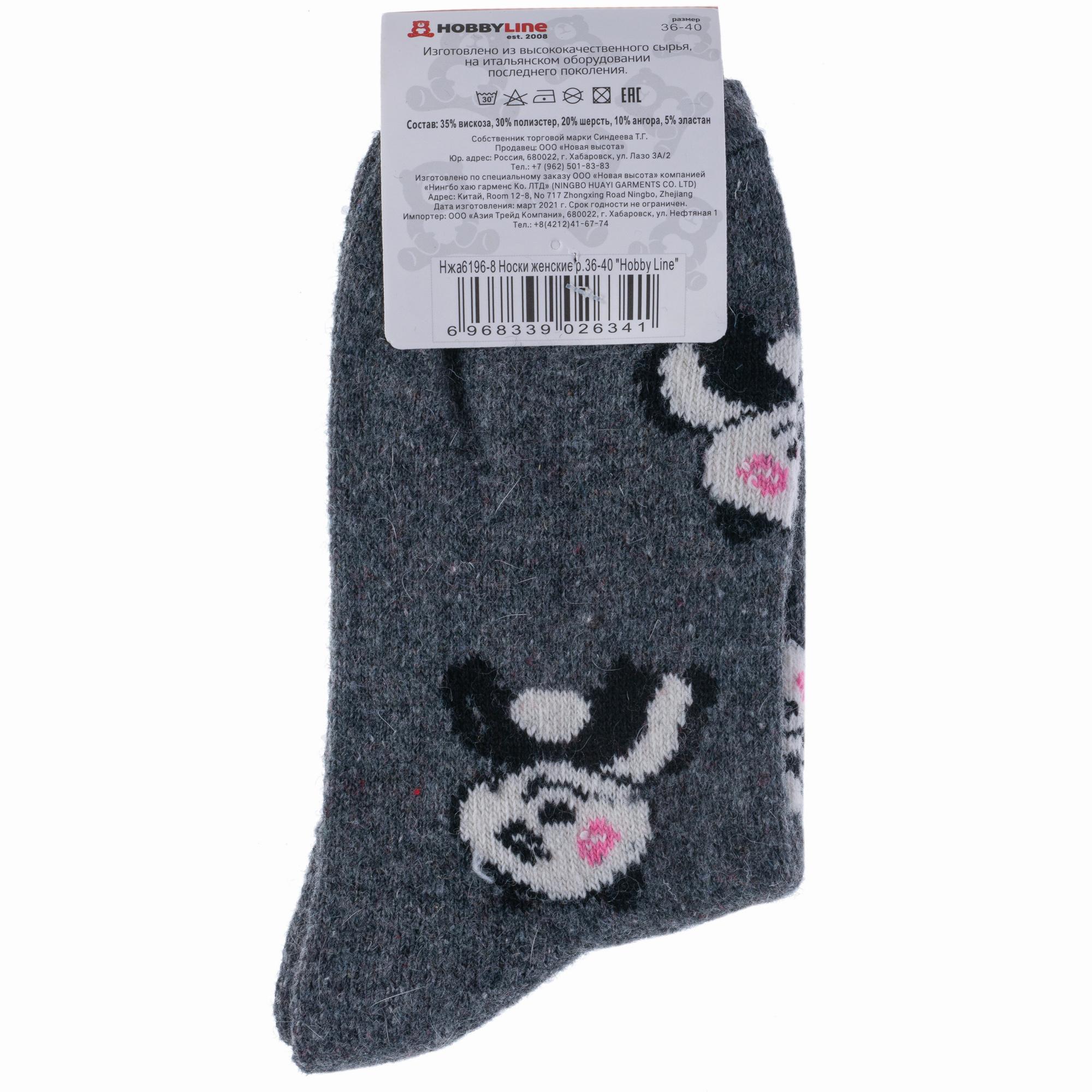 Зимние средней длины женские носки, цвет темно-серый, теплые, повседневные, шов обычный (не бесшовные), принт (рисунок): животные, с узором, крупные контрастные рисунки, состав: 35% вискоза, 30% полиэстер, 20% шерсть, 10% ангора, 5% эластан, арт. 6196-8. Производитель «Китай, страна бренда - Россия» под брендом «Hobby line».