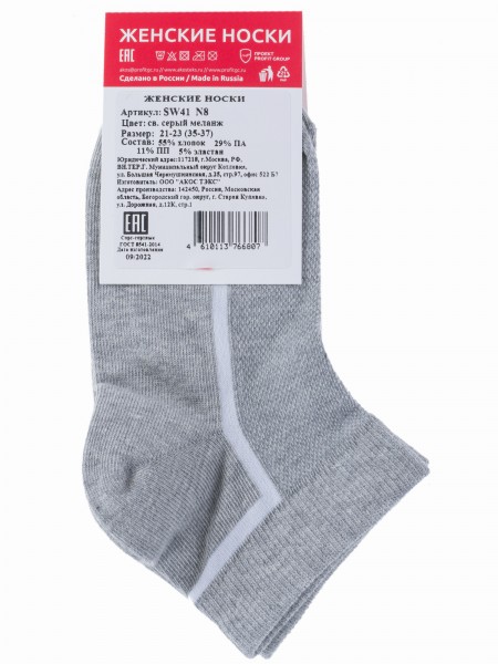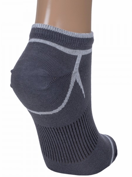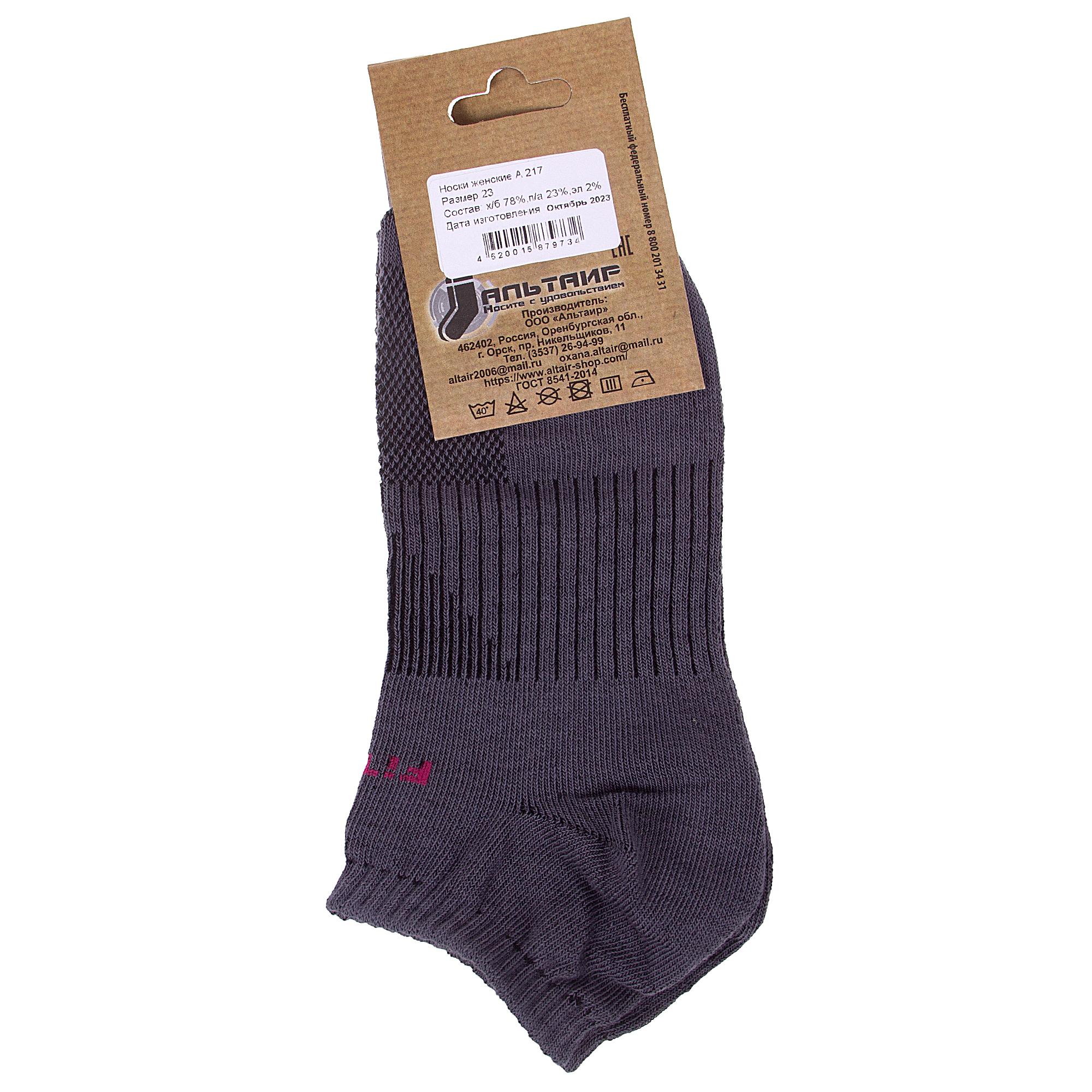 Круглогодичные короткие женские носки, цвет серый, спортивные, в сеточку, шов обычный (не бесшовные), принт (рисунок): надписи, с узором, состав: 75% хлопок, 23% полиамид, 2% эластан, арт. А217. Производитель «ООО Альтаир, г. Орск, Оренбургская обл, Россия» под брендом «Альтаир».