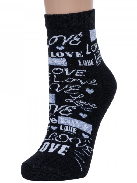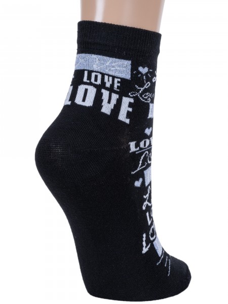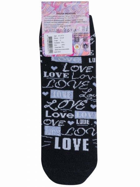 Круглогодичные укороченные женские носки, цвет синий, спортивные, повседневные, шов обычный (не бесшовные), принт (рисунок): спортивные, надписи, контрастные пятка/мысок/резинка, с узором, состав: 78% хлопок, 20% полиамид, 2% эластан, арт. С187. Производитель «ООО Альтаир, г. Орск, Оренбургская обл, Россия» под брендом «Альтаир».
