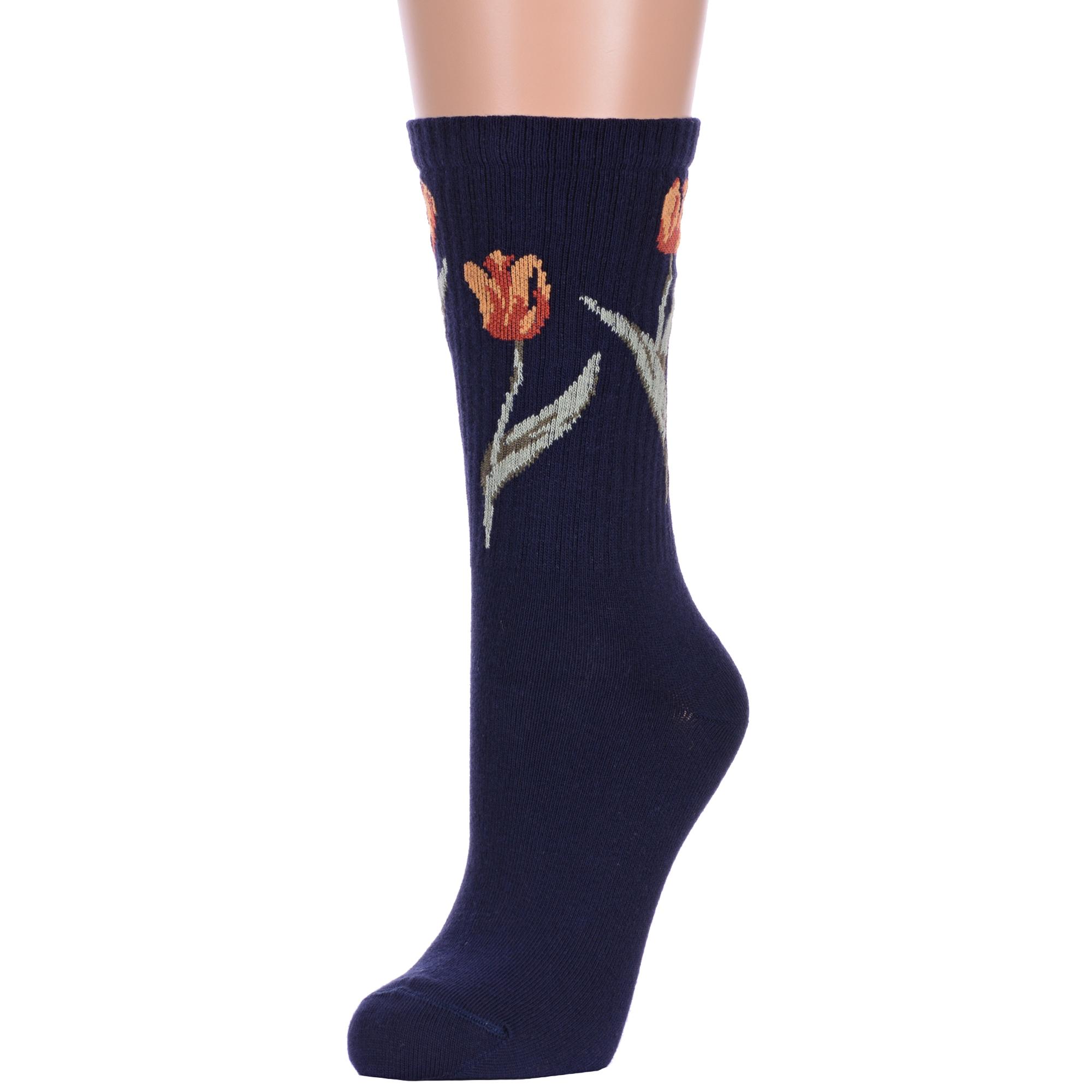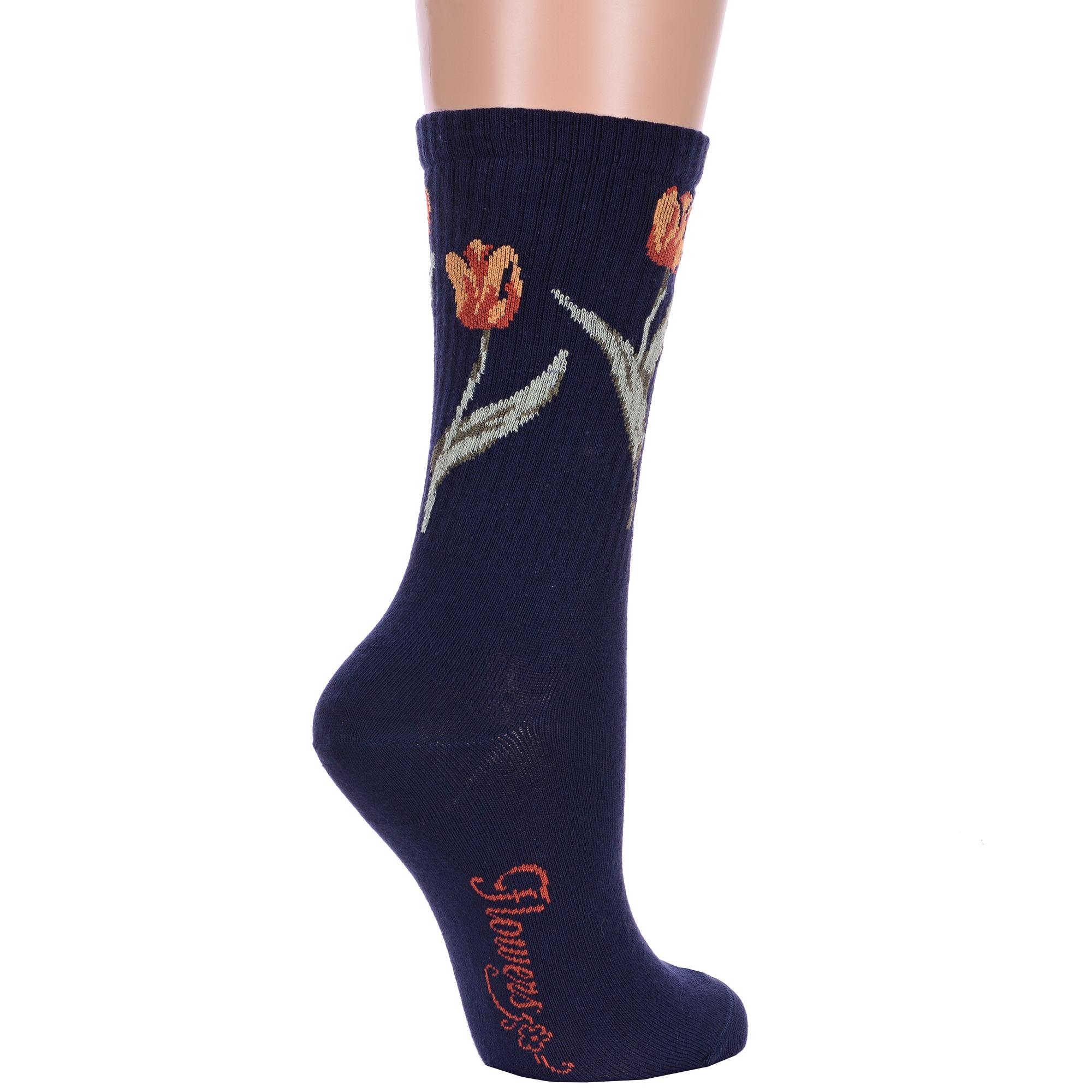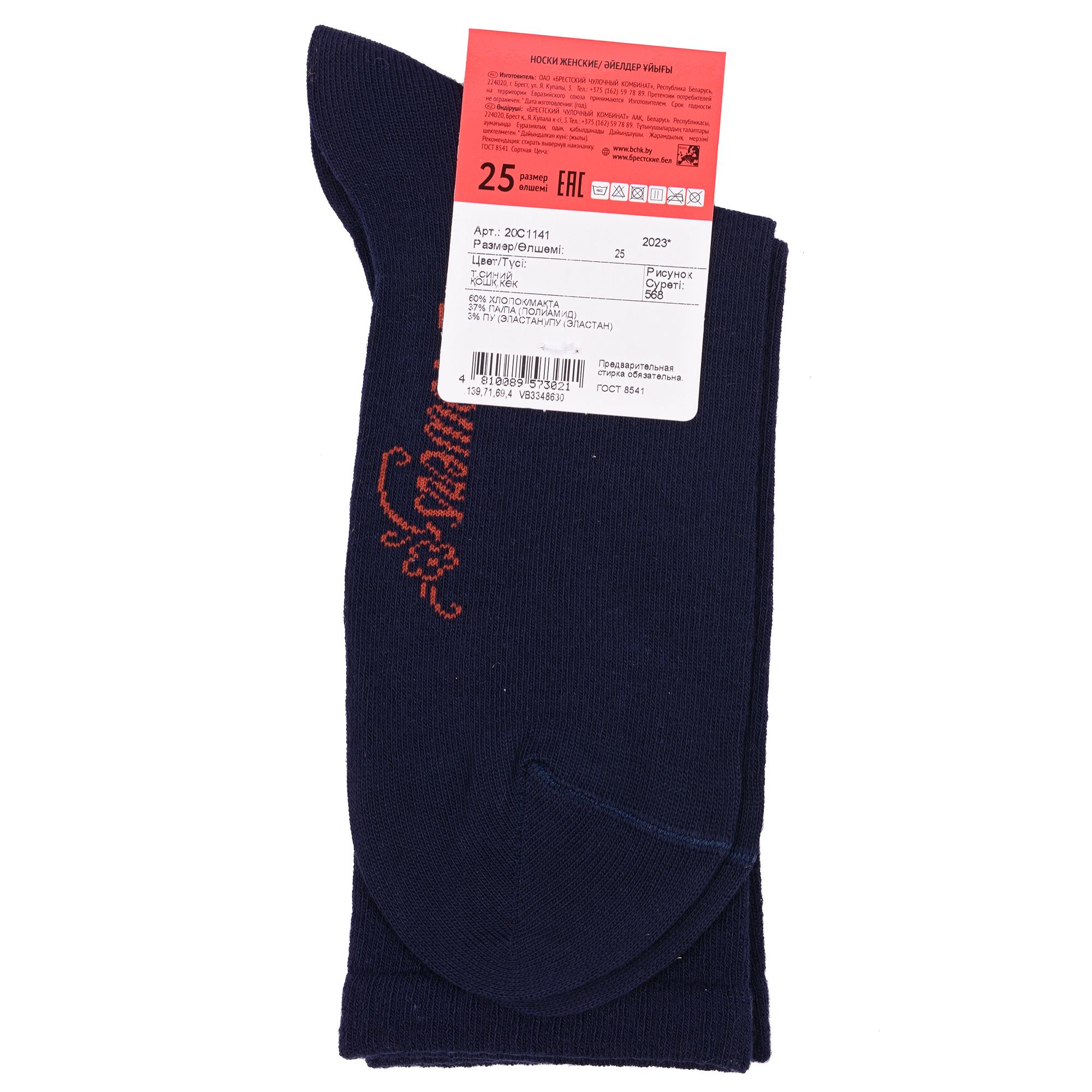 Круглогодичные средней длины женские носки, цвет темно-синий, спортивные, повседневные, возможно бесшовные, принт (рисунок): цветы/растения, в рубчик, с узором, состав: 60% хлопок, 37% полиамид, 3% эластан, арт. 20С1141. Производитель «Брестский чулочный комбинат ОАО, Беларусь» под брендом «Брестские (бчк)».
