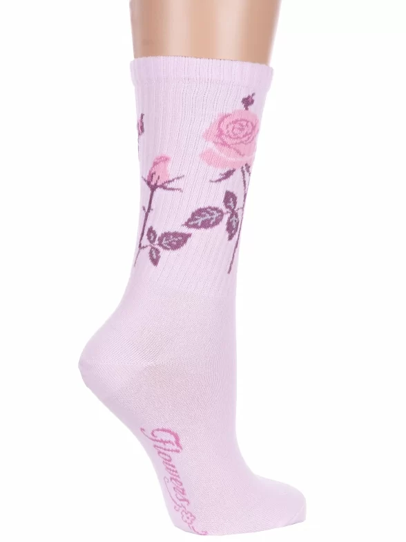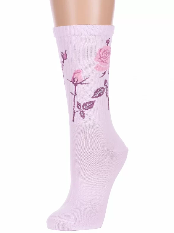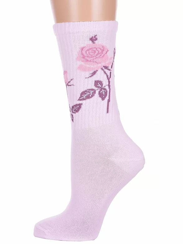 Круглогодичные средней длины женские носки, цвет розовый, спортивные, повседневные, возможно бесшовные, принт (рисунок): цветы / растения, в рубчик, с узором, состав: 60% хлопок, 37% полиамид, 3% эластан, арт. 20С1141. Производитель «Брестский чулочный комбинат ОАО, Беларусь» под брендом «Брестские (бчк)».