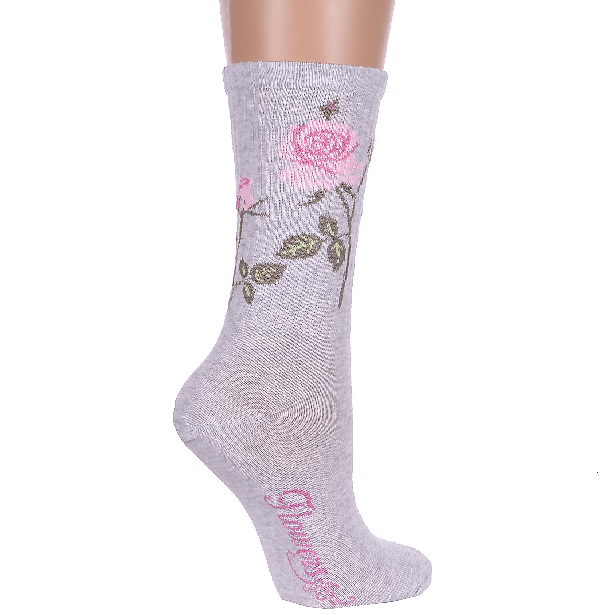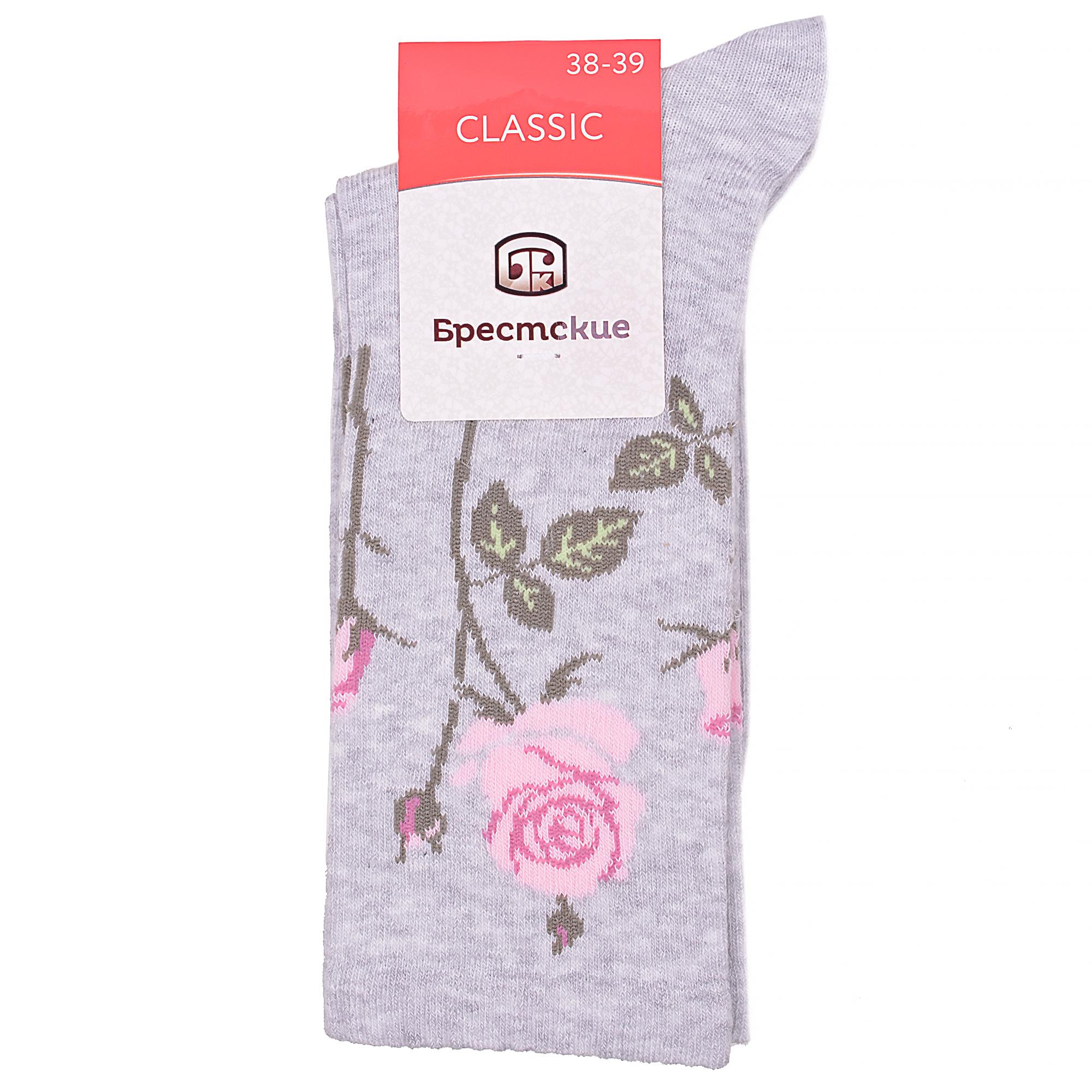 Круглогодичные средней длины женские носки, цвет светло-серый, спортивные, повседневные, возможно бесшовные, принт (рисунок): цветы / растения, в рубчик, с узором, состав: 60% хлопок, 37% полиамид, 3% эластан, арт. 20С1141. Производитель «Брестский чулочный комбинат ОАО, Беларусь» под брендом «Брестские (бчк)».