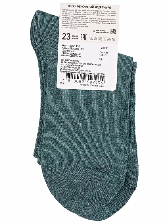 Женские спортивные носки Брестские (БЧК), 23С1155, рис. 581, ТЕМНО-ИЗУМРУДНЫЕ МЕЛАНЖ