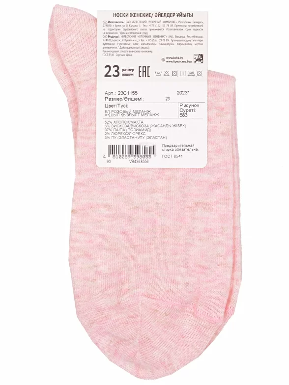 Женские спортивные носки Брестские (БЧК), 23С1155, рис. 583, БЛЕДНО-РОЗОВЫЕ МЕЛАНЖ