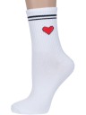 Круглогодичные укороченные женские носки, цвет белый, спортивные, повседневные, возможно бесшовные, принт (рисунок): сердечки / поцелуи / любовь, полоски, в рубчик, небольшой рисунок, состав: 67% хлопок, 24% полиамид, 7% эластан, 2% полипропилен, арт. С-1225. Производитель «КРАСНАЯ ВЕТКА» Россия под брендом «Красная ветка».