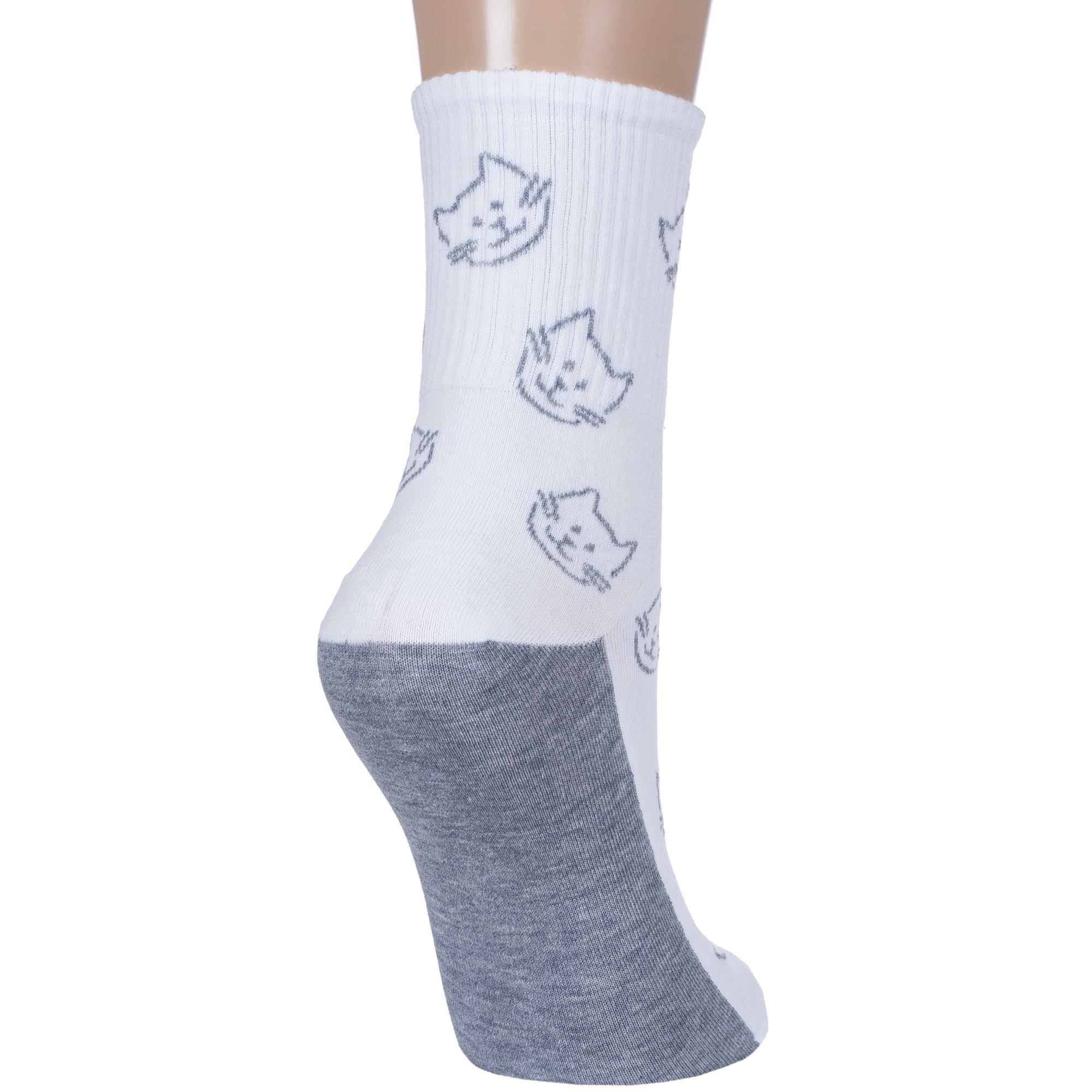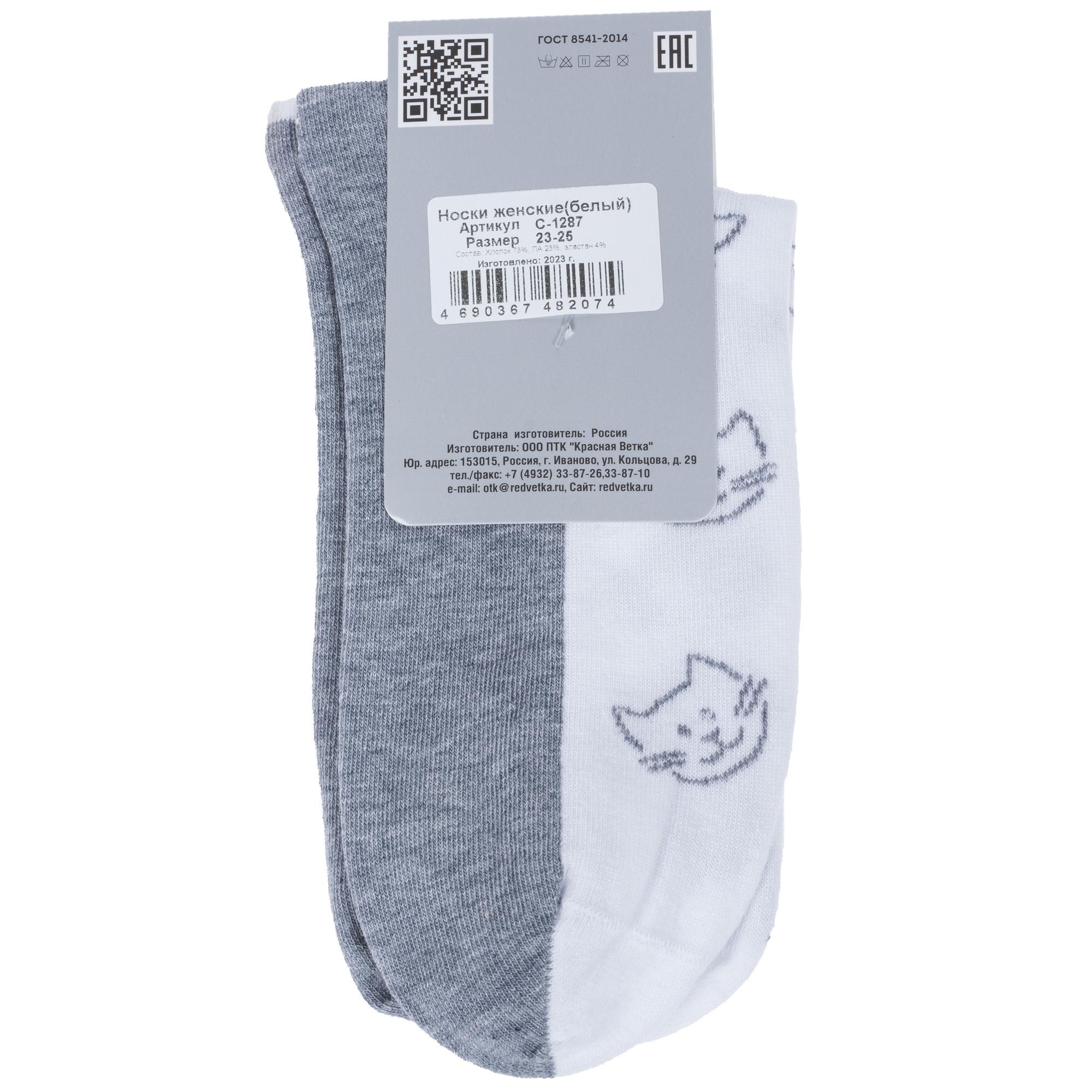 Круглогодичные укороченные женские носки, цвет белый, спортивные, повседневные, возможно бесшовные, принт (рисунок): животные, в рубчик, с узором, состав: 73% хлопок, 23% полиамид, 4% эластан, арт. С-1287. Производитель «КРАСНАЯ ВЕТКА» Россия под брендом «Красная ветка».