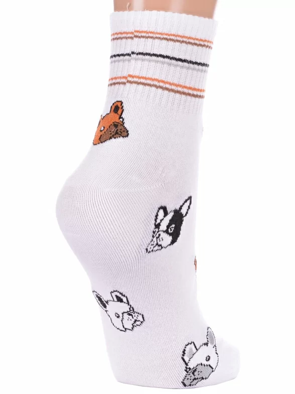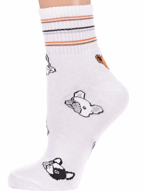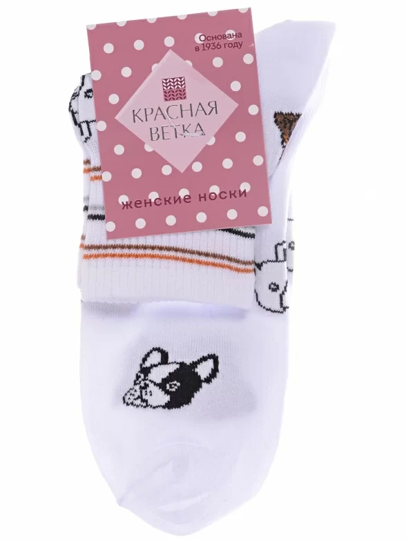 Круглогодичные укороченные женские носки, цвет белый, спортивные, повседневные, возможно бесшовные, принт (рисунок): полоски, животные, в рубчик, с узором, состав: 53% хлопок, 23% полиэстер, 18% полипропилен, 6% эластан, арт. С-1466У. Производитель «КРАСНАЯ ВЕТКА» Россия под брендом «Красная ветка».