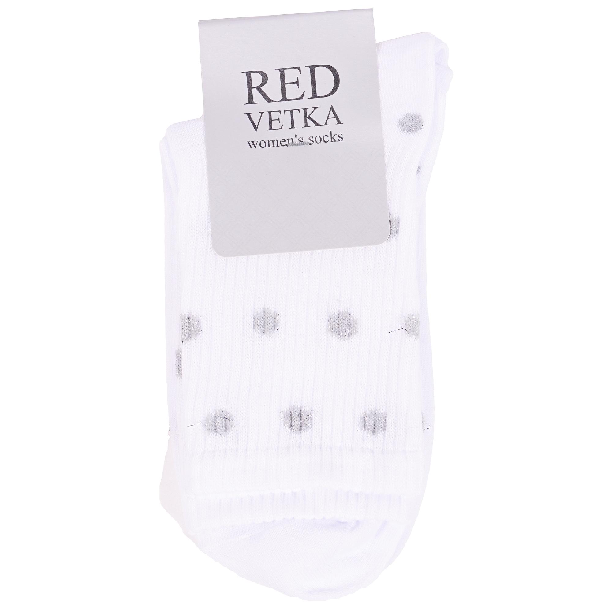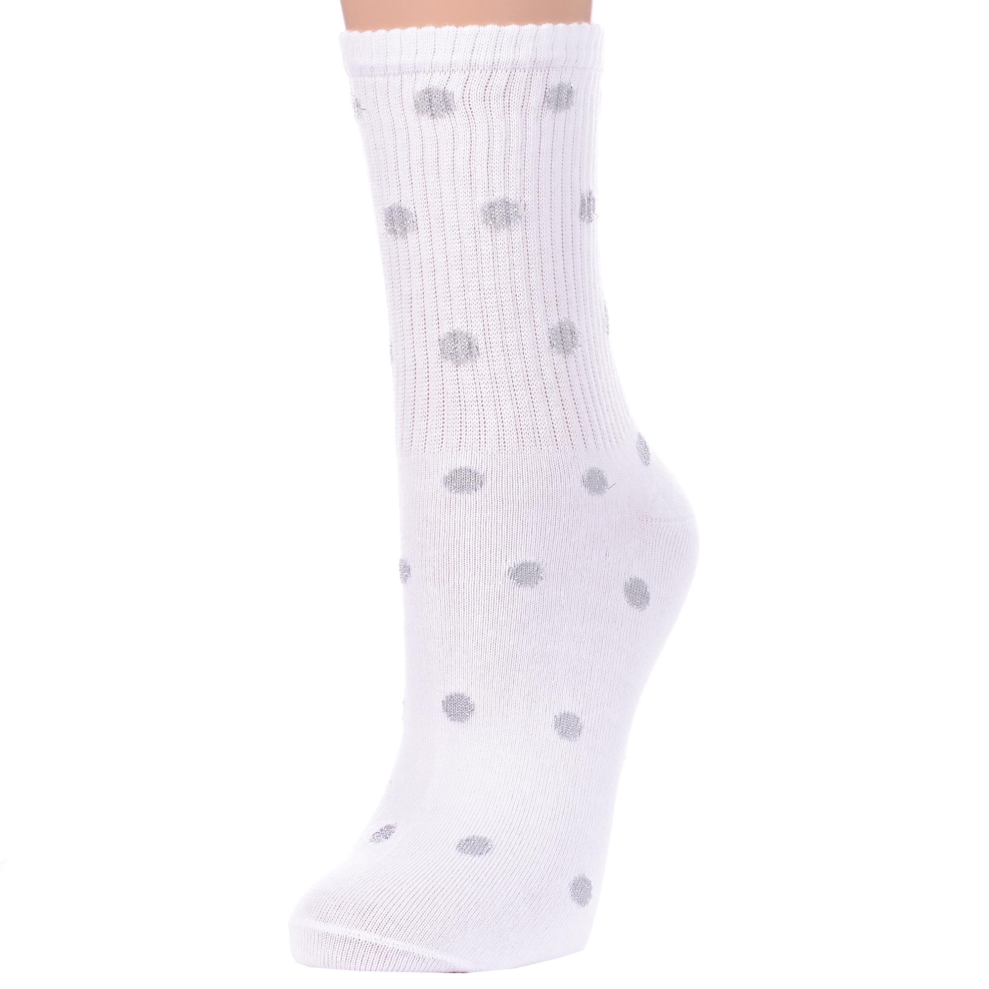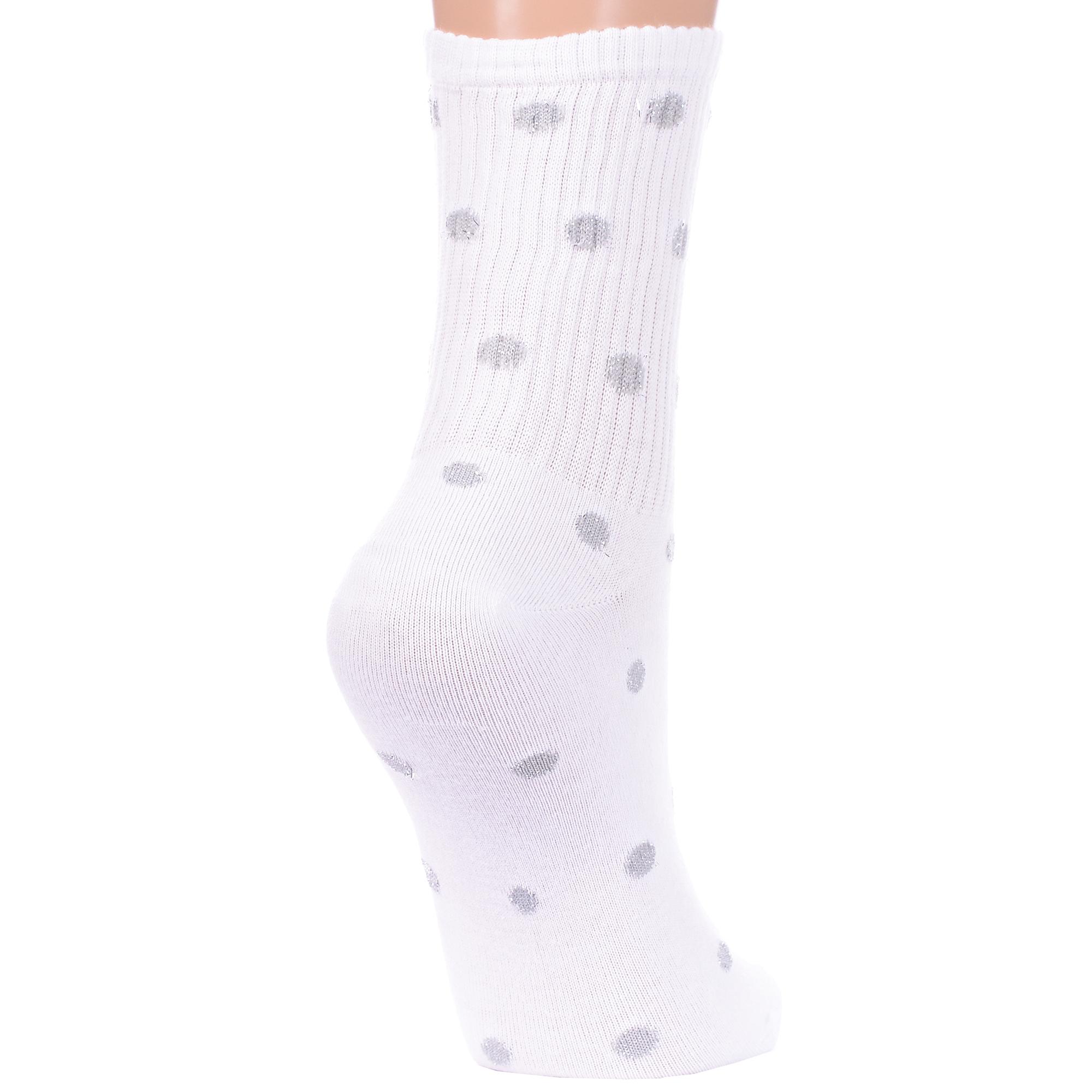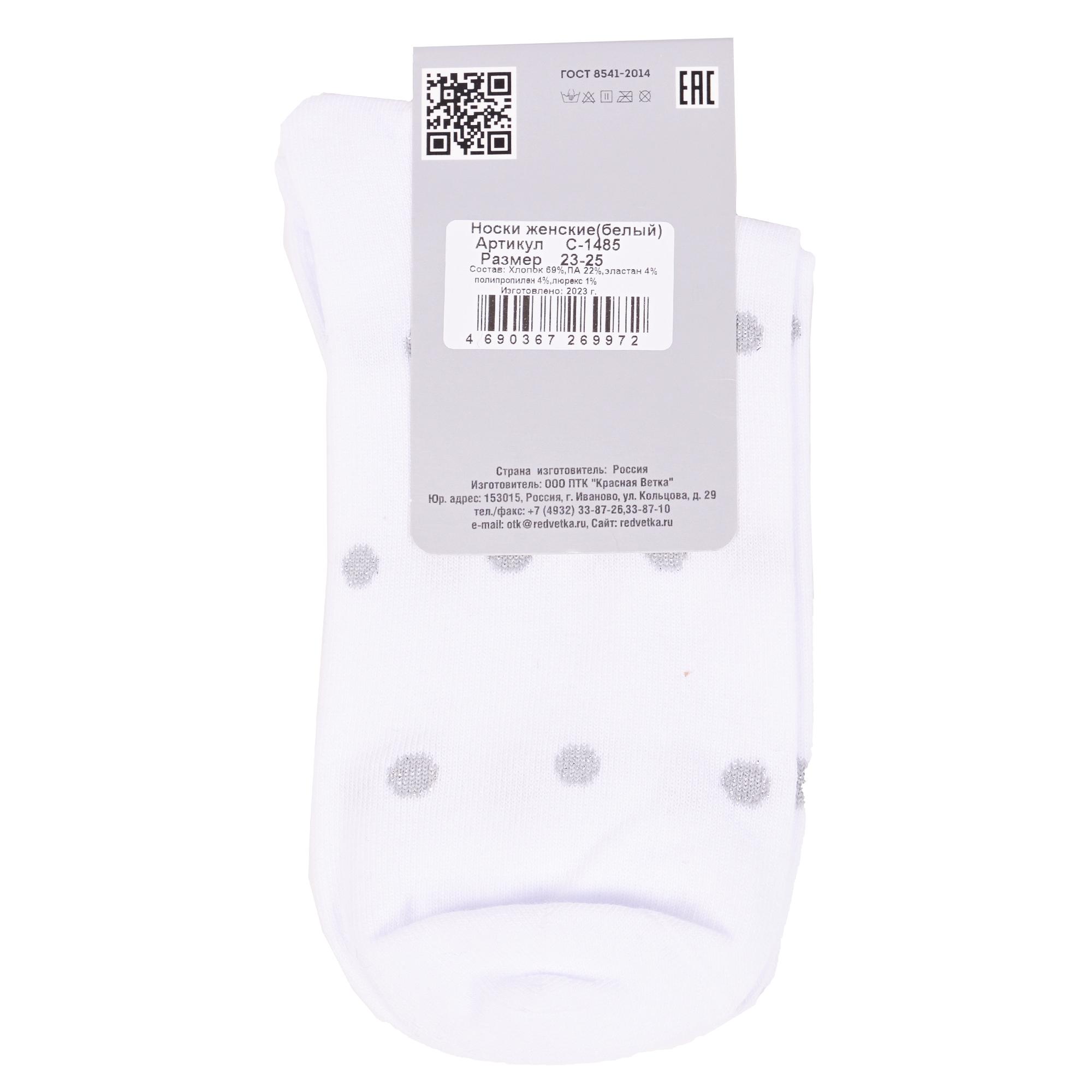 Круглогодичные средней длины женские носки, цвет белый, спортивные, повседневные, возможно бесшовные, принт (рисунок): горох / точка, в рубчик, блеск люрекса, с узором, состав: 69% хлопок, 22% полиамид, 4% эластан, 4% полипропилен, 1% люрекс, арт. С-1485. Производитель «КРАСНАЯ ВЕТКА» Россия под брендом «Красная ветка».