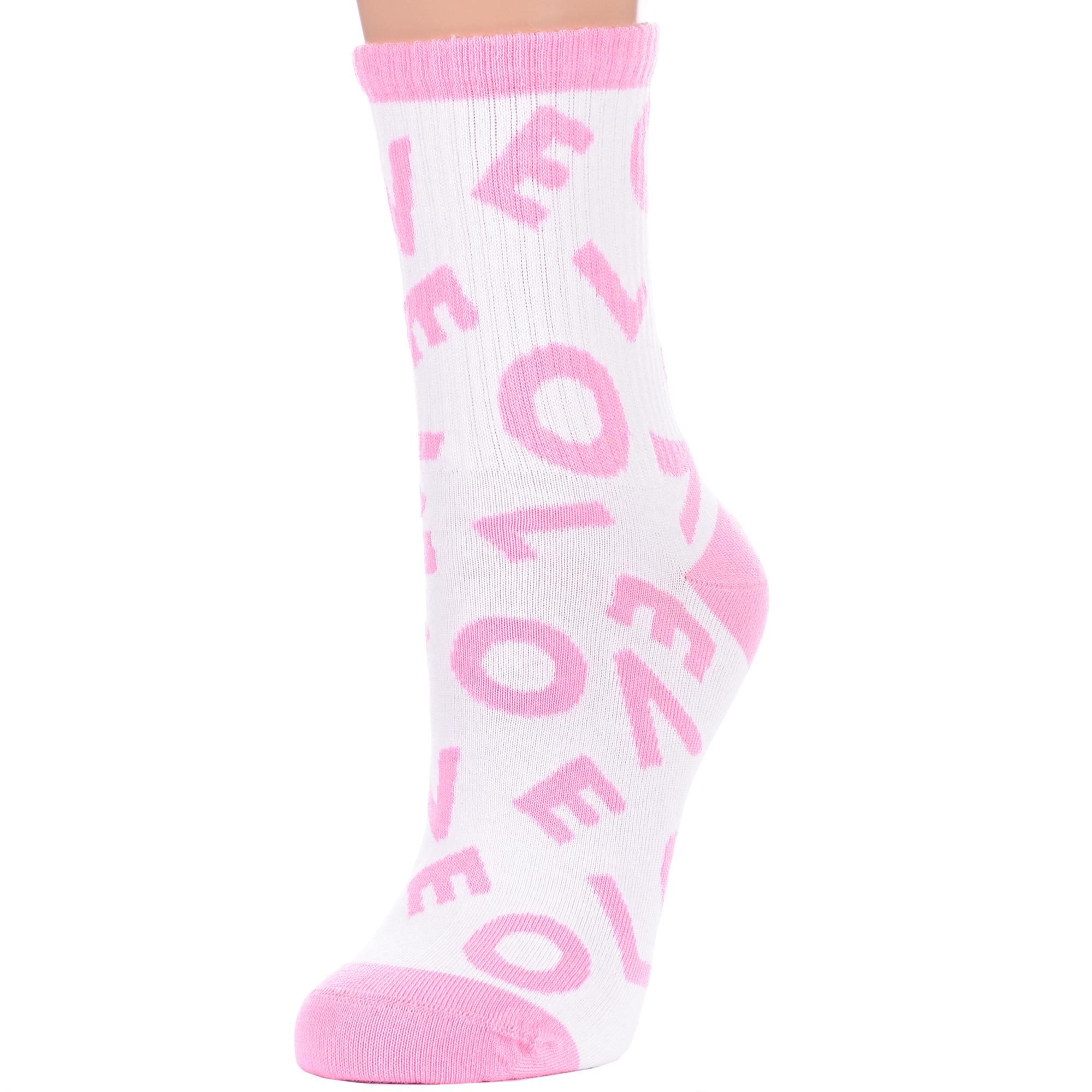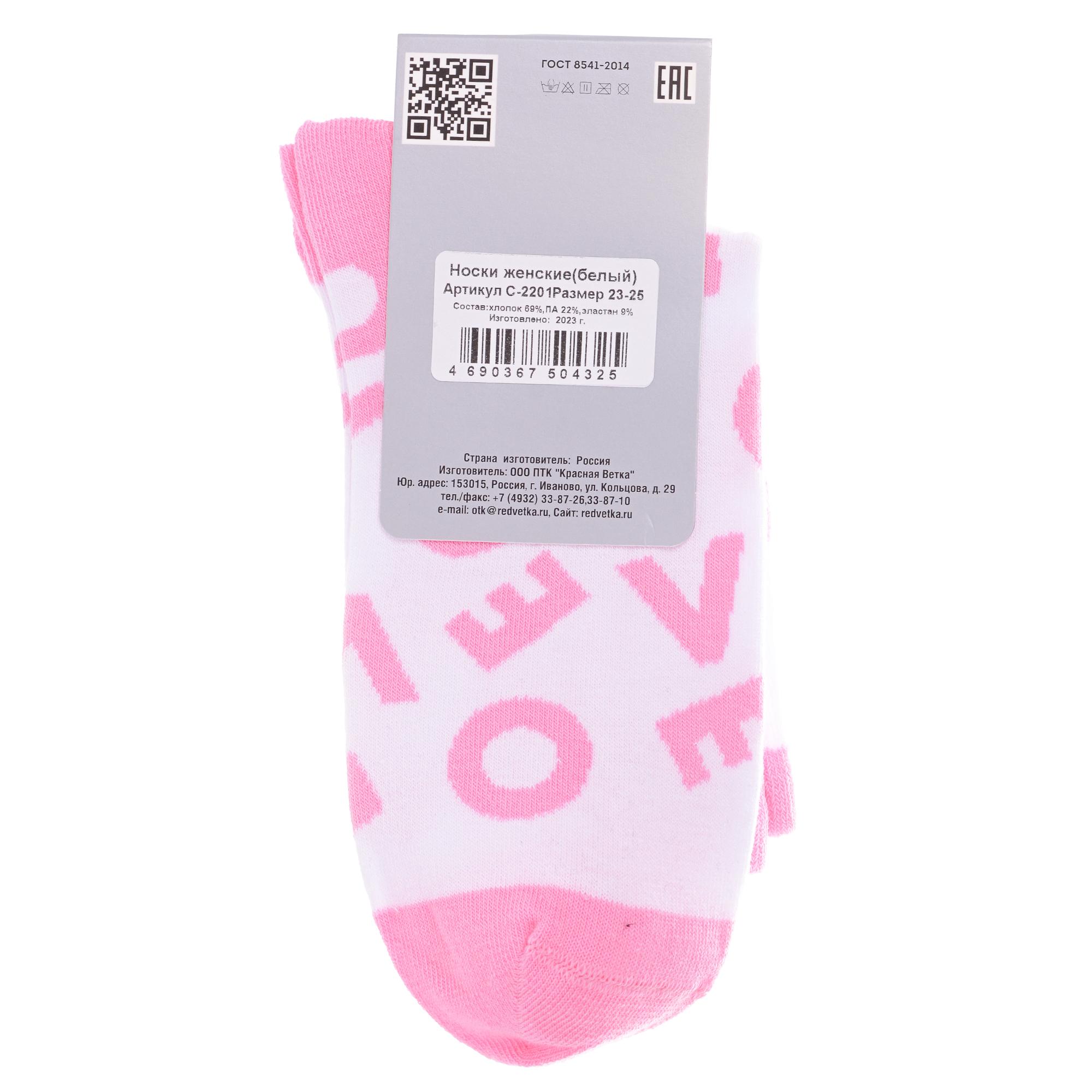 Круглогодичные средней длины женские носки, цвет белый, спортивные, повседневные, возможно бесшовные, принт (рисунок): сердечки / поцелуи / любовь, надписи, контрастные пятка / мысок / резинка, в рубчик, с узором, крупные контрастные рисунки, состав: 69% хлопок, 22% полиамид, 9% эластан, арт. С-2201. Производитель «КРАСНАЯ ВЕТКА» Россия под брендом «Красная ветка».