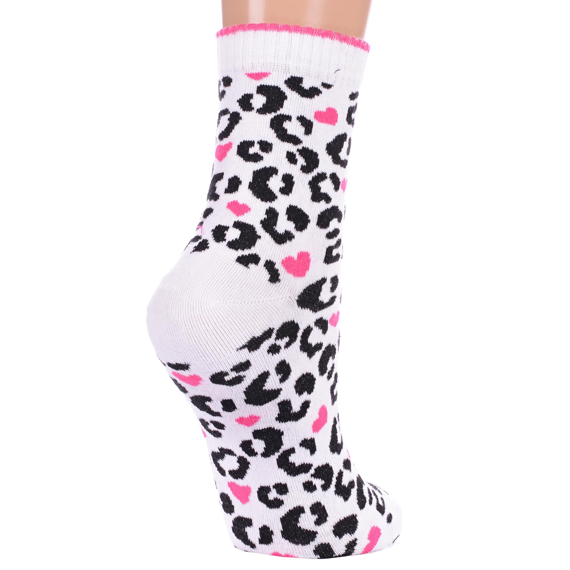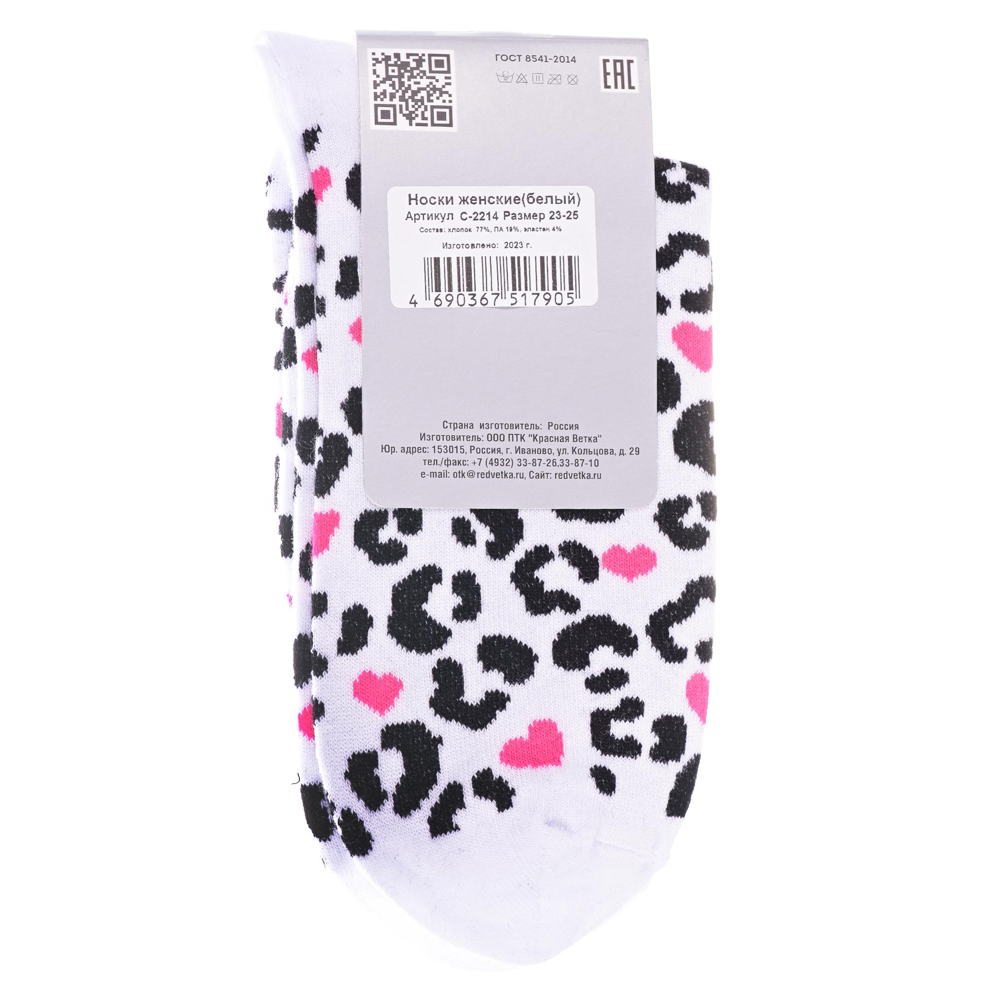 Круглогодичные укороченные женские носки, цвет белый, спортивные, повседневные, возможно бесшовные, принт (рисунок): сердечки / поцелуи / любовь, леопардовый, с узором, состав: 77% хлопок, 19% полиамид, 4% эластан, арт. С-2214. Производитель «КРАСНАЯ ВЕТКА» Россия под брендом «Красная ветка».