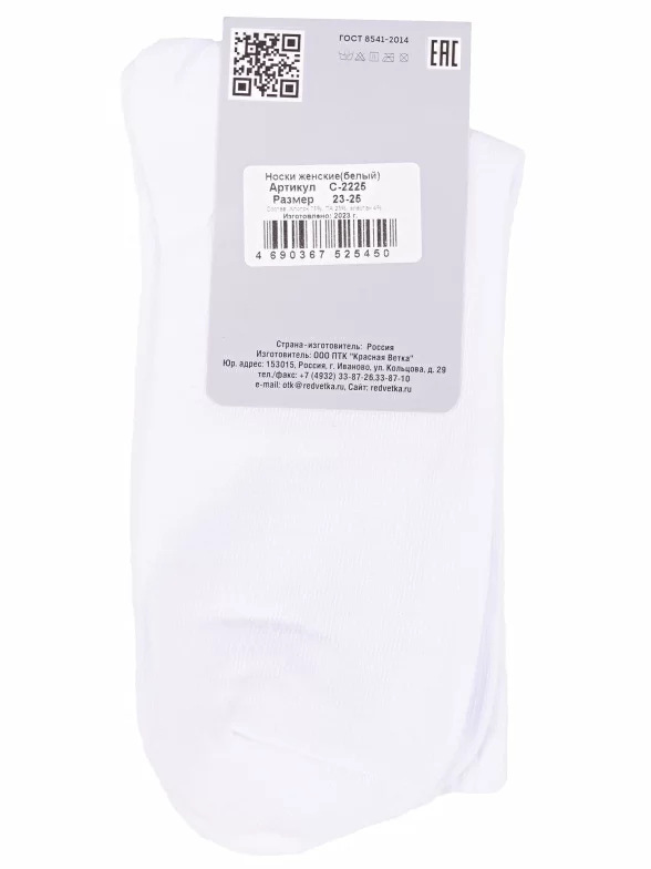 Женские спортивные носки "Красная ветка", С-2225, БЕЛЫЕ