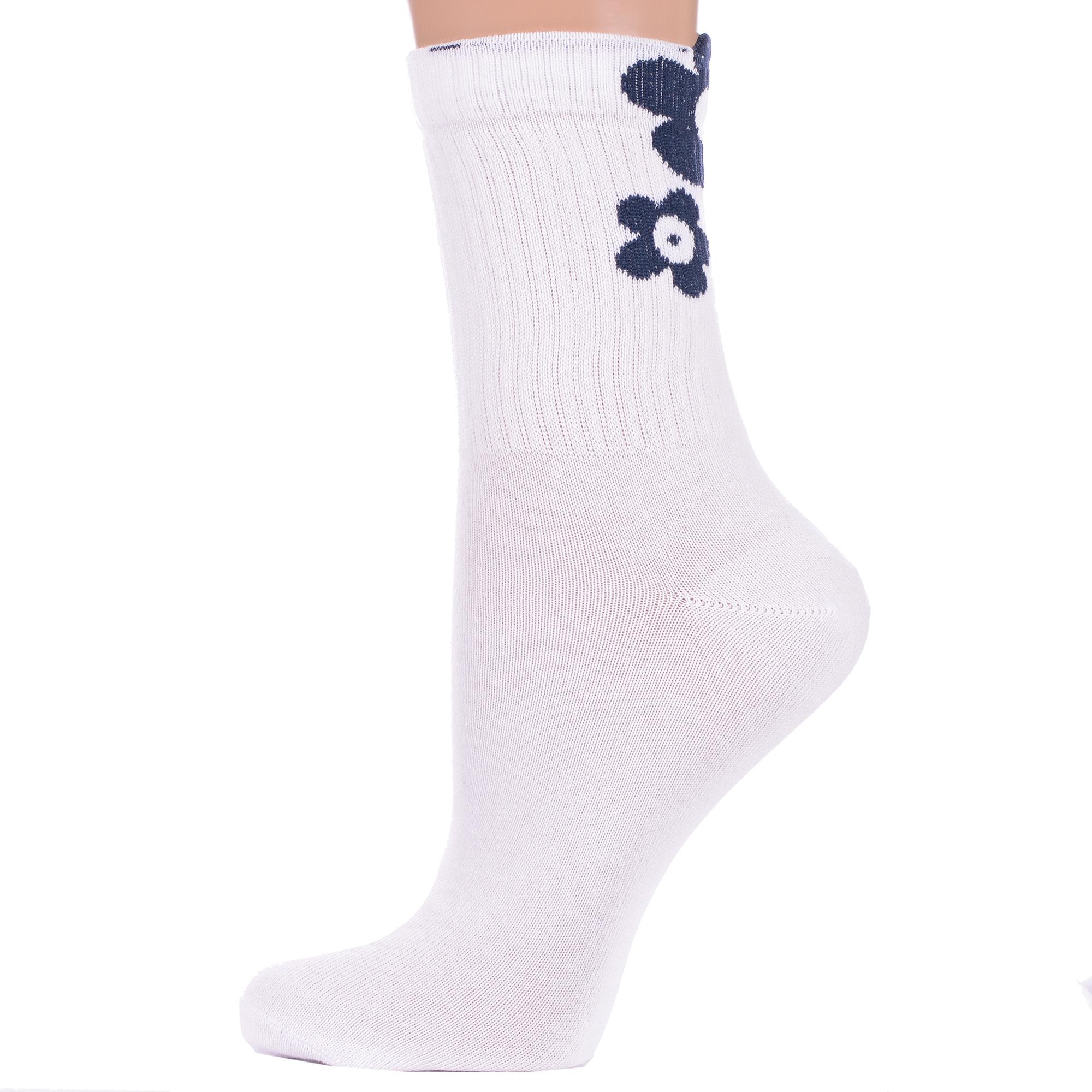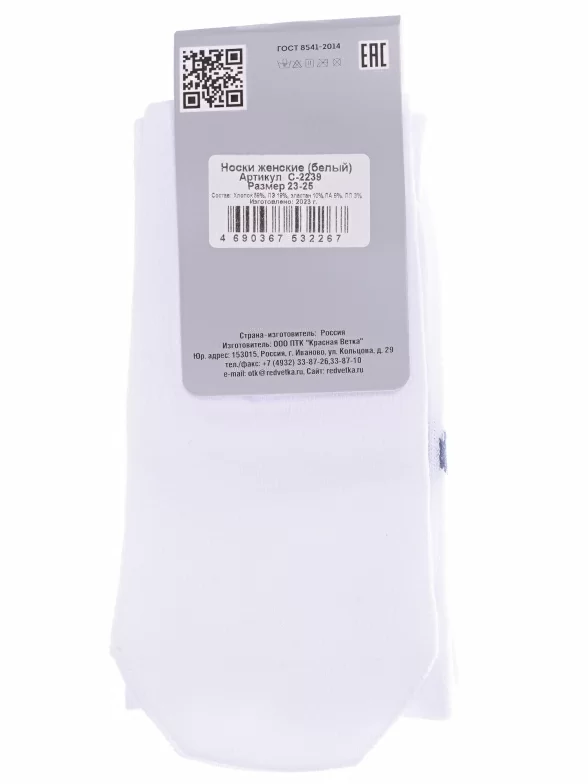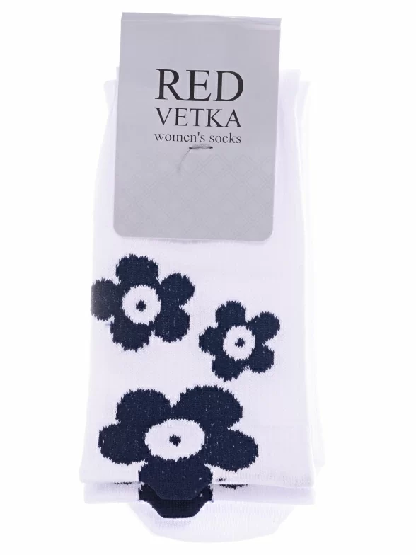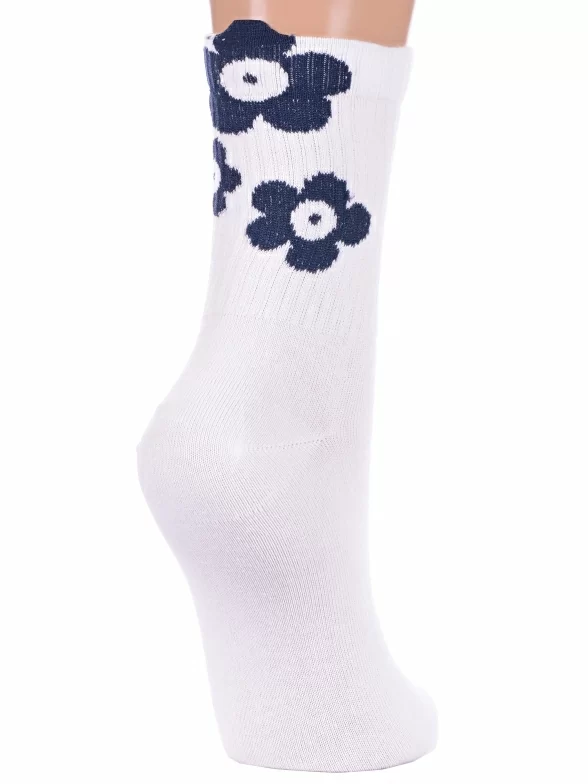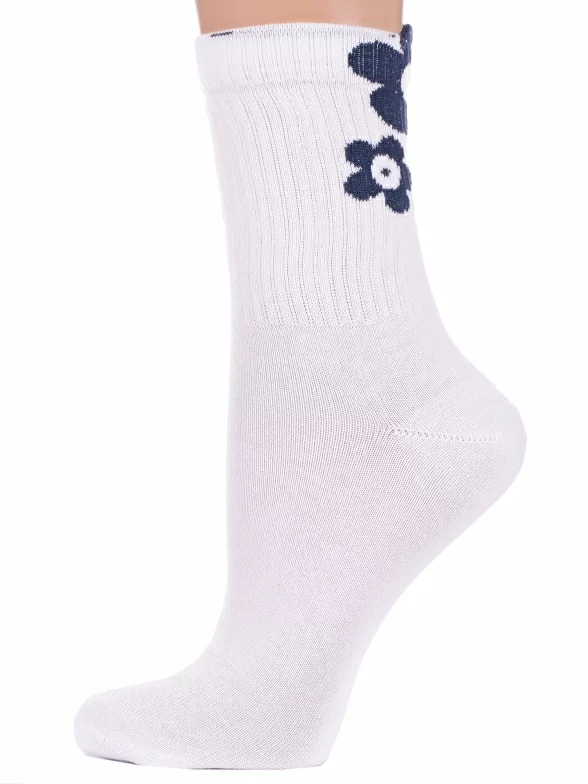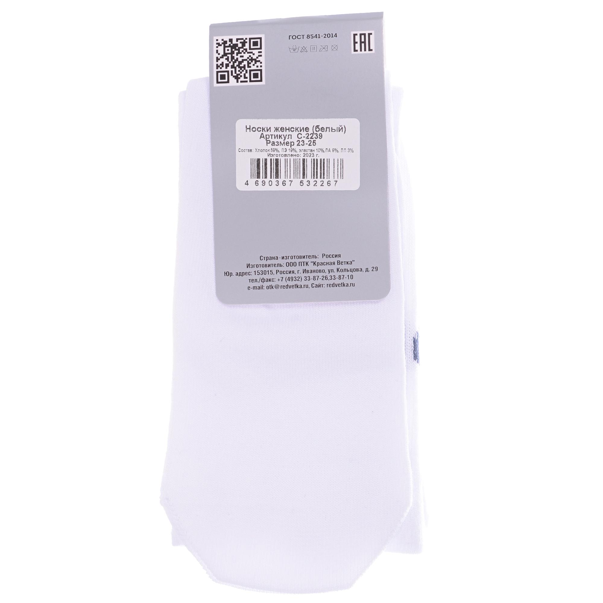 Круглогодичные средней длины женские носки, цвет белый, спортивные, повседневные, возможно бесшовные, принт (рисунок): цветы / растения, в рубчик, с узором, состав: 59% хлопок, 19% полиэстер, 10% эластан, 9% полиамид, 3% полипропилен, арт. С-2239. Производитель «КРАСНАЯ ВЕТКА» Россия под брендом «Красная ветка».